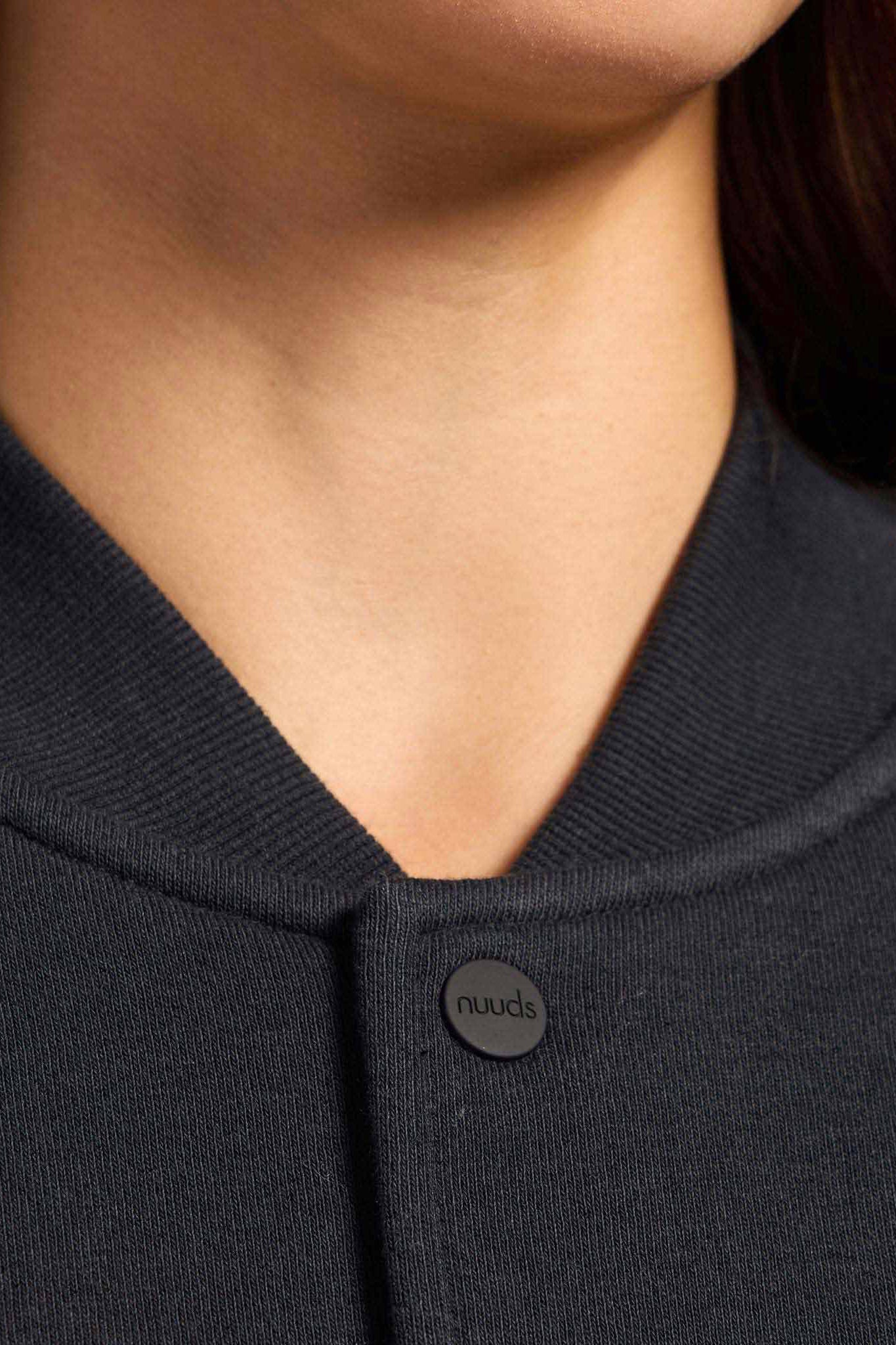 The Alumni Jacket brings a nostalgic feel with a modern, easy-to-wear update. Designed with a soft fleece interior and a slightly oversized, boxy fit, this button-front jacket offers warmth without feeling bulky. Ribbed trim at the collar, cuffs, and hem adds structure, while matte snap buttons give it a clean, elevated finish.