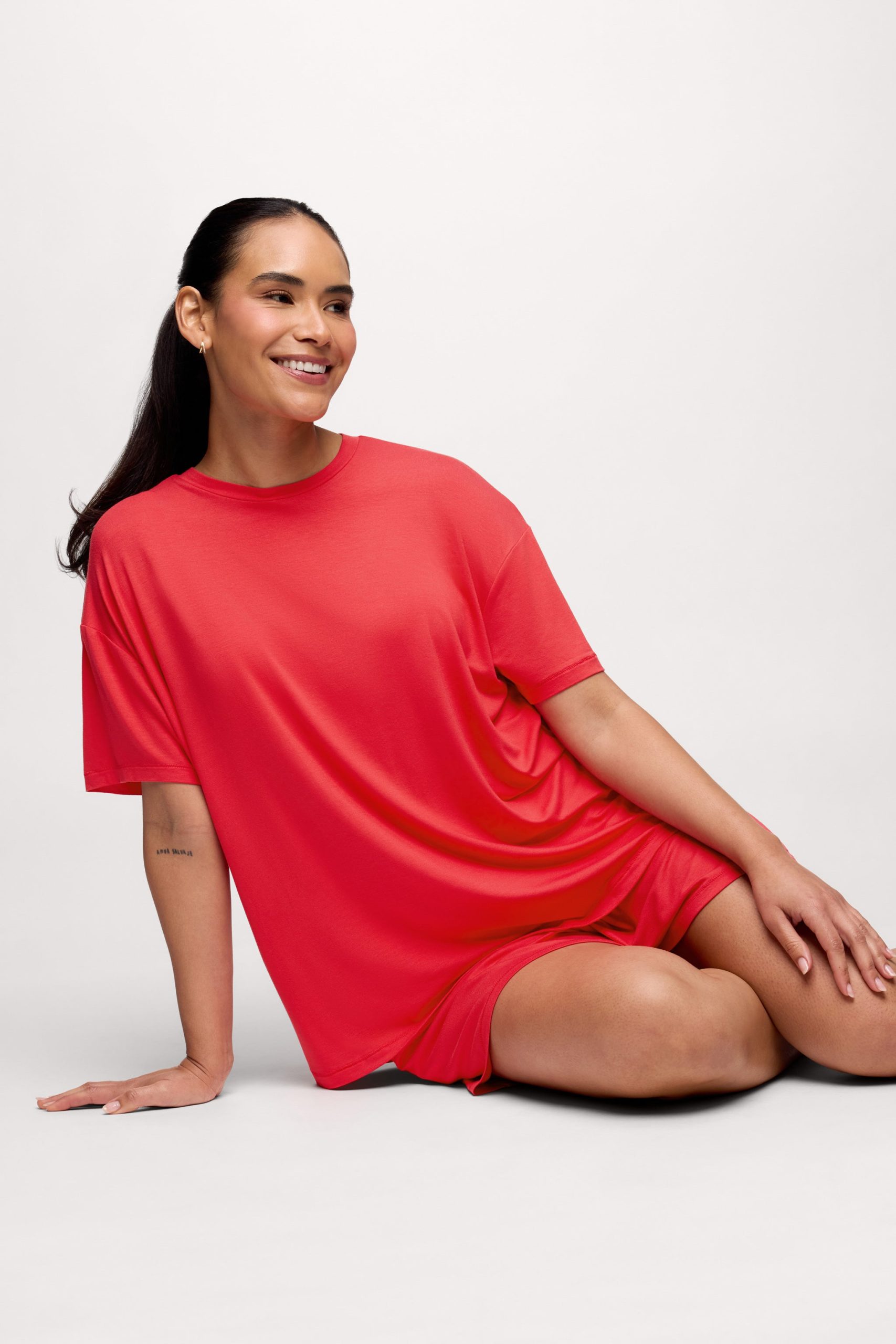 Feel nuud in our cooling Boyfriend Pajama Tee. Made from our favorite jersey pajama fabric. Curated with your comfort in mind, this breathable, stretchy top will move with you throughout the night and on slow mornings. With a classic crew neckline and relaxed fit, this top keeps you feeling put-together while enjoying your well-earned downtime.