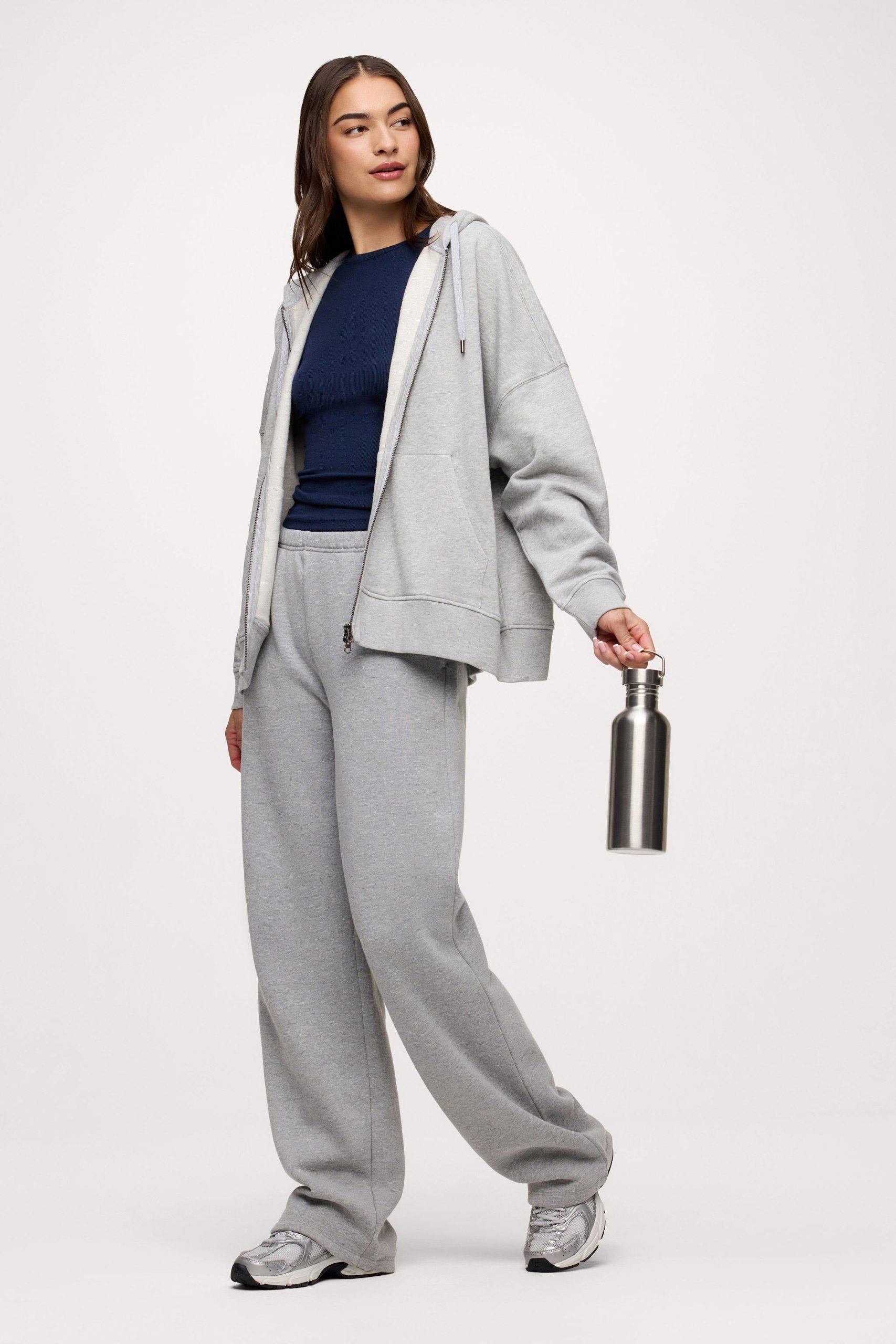 The Core Fleece Two Way Zip Hoodie is designed to be your everyday layer with just the right balance of comfort and versatility. Featuring a relaxed fit with drop shoulders and a smooth fleece interior, this zip up hoodie delivers effortless warmth without feeling bulky. The two-way zipper allows for customizable styling and easy movement, making it perfect for layering over long sleeve tops or wearing on its own. Whether you’re running errands, traveling, or lounging, this zip up jacket offers comfort, function, and a clean, elevated look you’ll reach for daily.