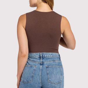Cotton Stretch Classic Crewneck Tank Bodysuit | Coffee