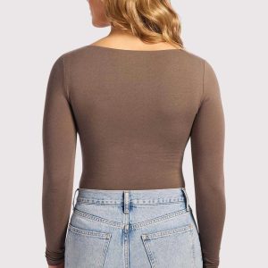 Categories: All Products, Bodysuits, Cotton Stretch, Fall2024, Instock, long sleeve bodysuits, long sleeves, Mocha, Shop All, sizebroken, Tops, Women's