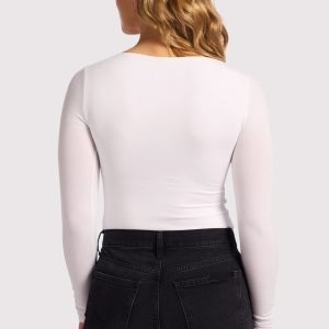 Categories: All Products, Bodysuits, Cotton Stretch, Fall2024, Instock, long sleeve bodysuits, long sleeves, Shop All, sizebroken, Tops, White, Women's