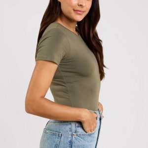 Categories: All Products, Bodysuits, Cotton Stretch, Instock, Olive, Sale, Shop All, short sleeve, Summer2025, tees and tanks, Tops, Women's