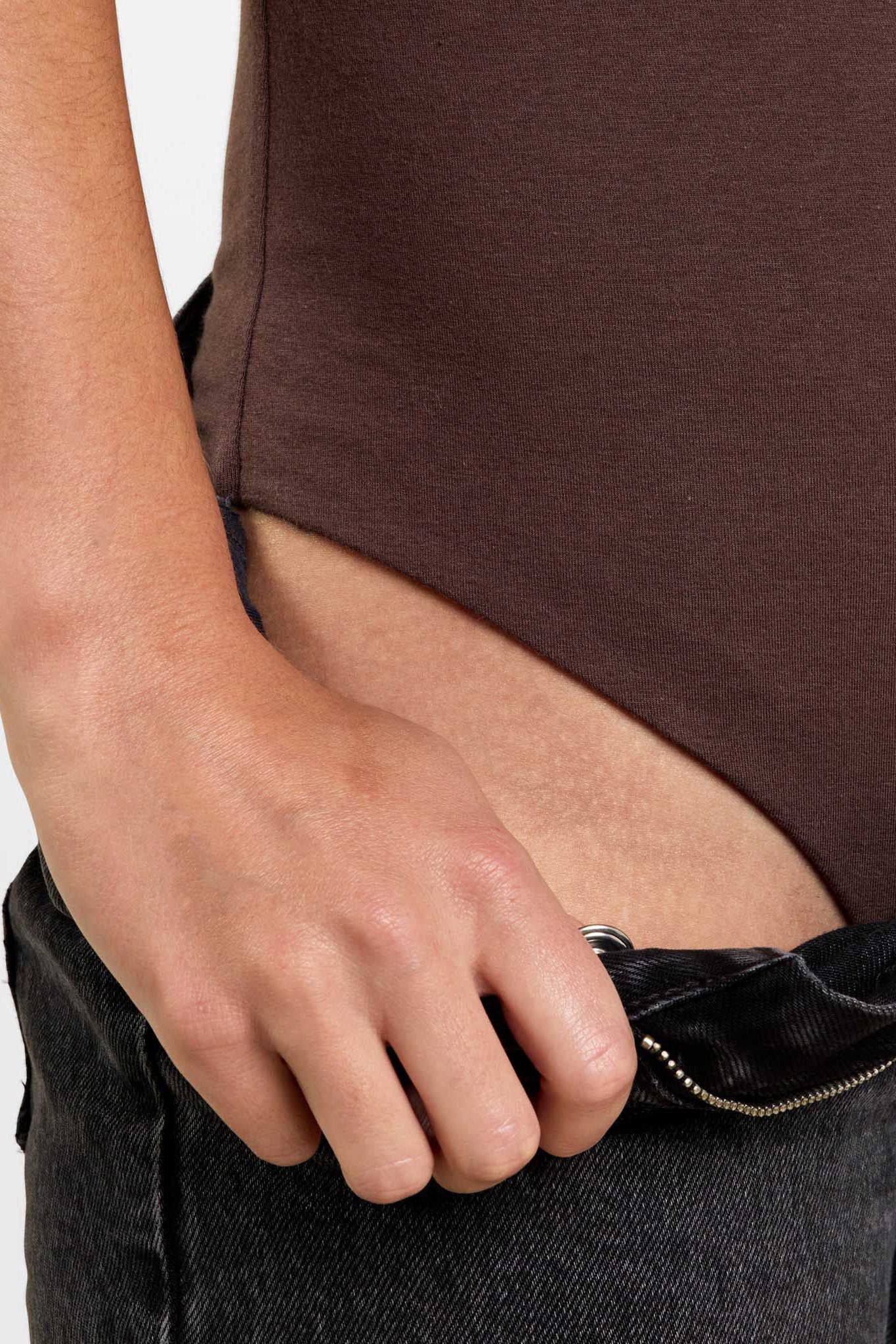 Cotton Stretch Short Sleeve Square Neck Bodysuit | Coffee