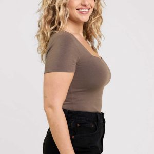 Categories: All Products, Bodysuits, Cotton Stretch, Instock, Mocha, Sale, Shop All, short sleeve, Summer2025, tees and tanks, Tops, Women's
