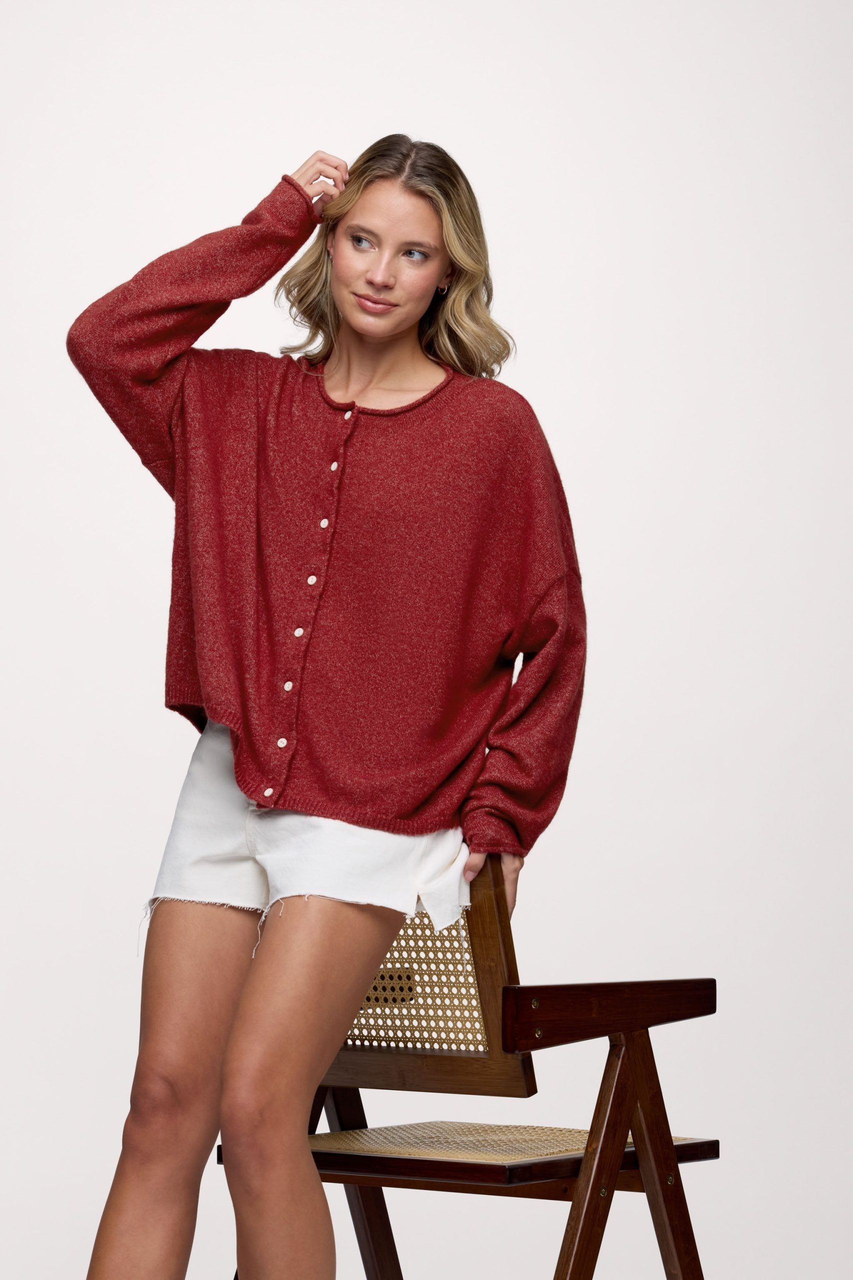 Cozy Knit Boxy Cardigan | Heather Scarlet