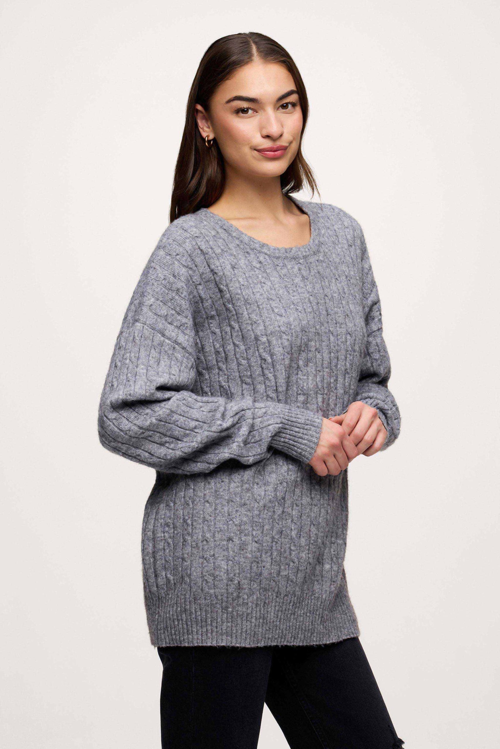 Cozy Knit Cable Crewneck Sweater | Charcoal