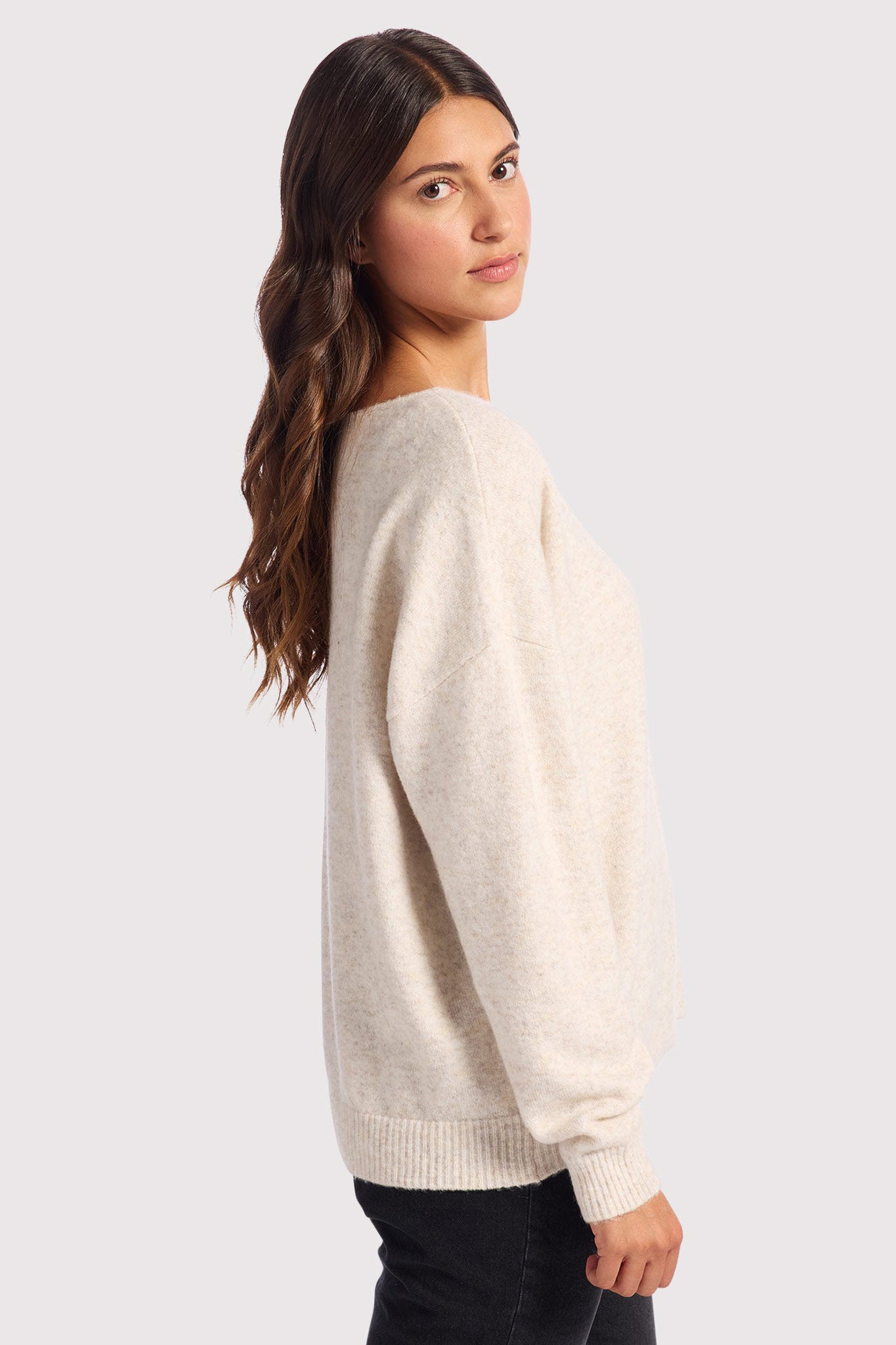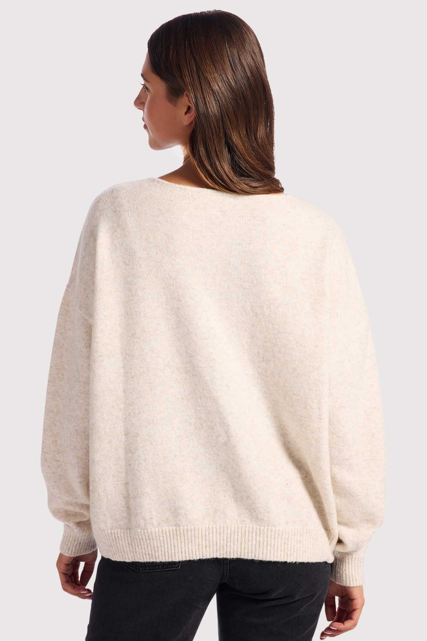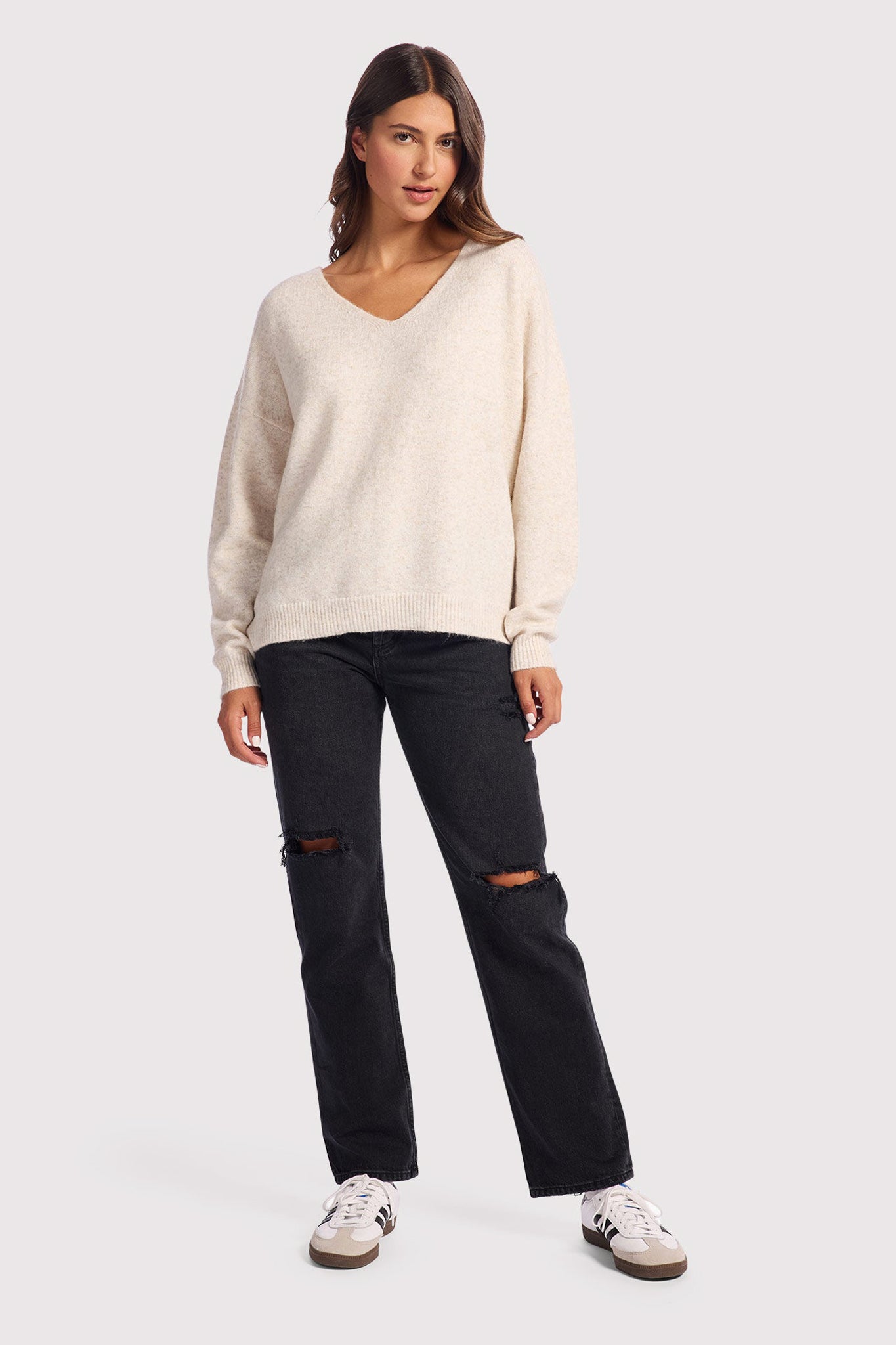 Cozy Knit V-Neck Sweater | Heather Bone