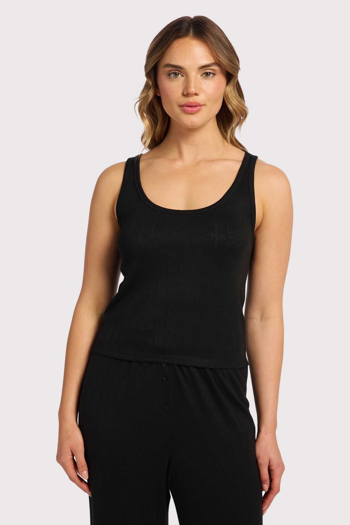 The ultimate dainty layer in our pointelle collection, this tank is for the girls who like to sleep with minimal clothing but maximum comfort. Feel flirty and fun in this lightweight tank featuring a scoop neckline and thin shoulder straps.