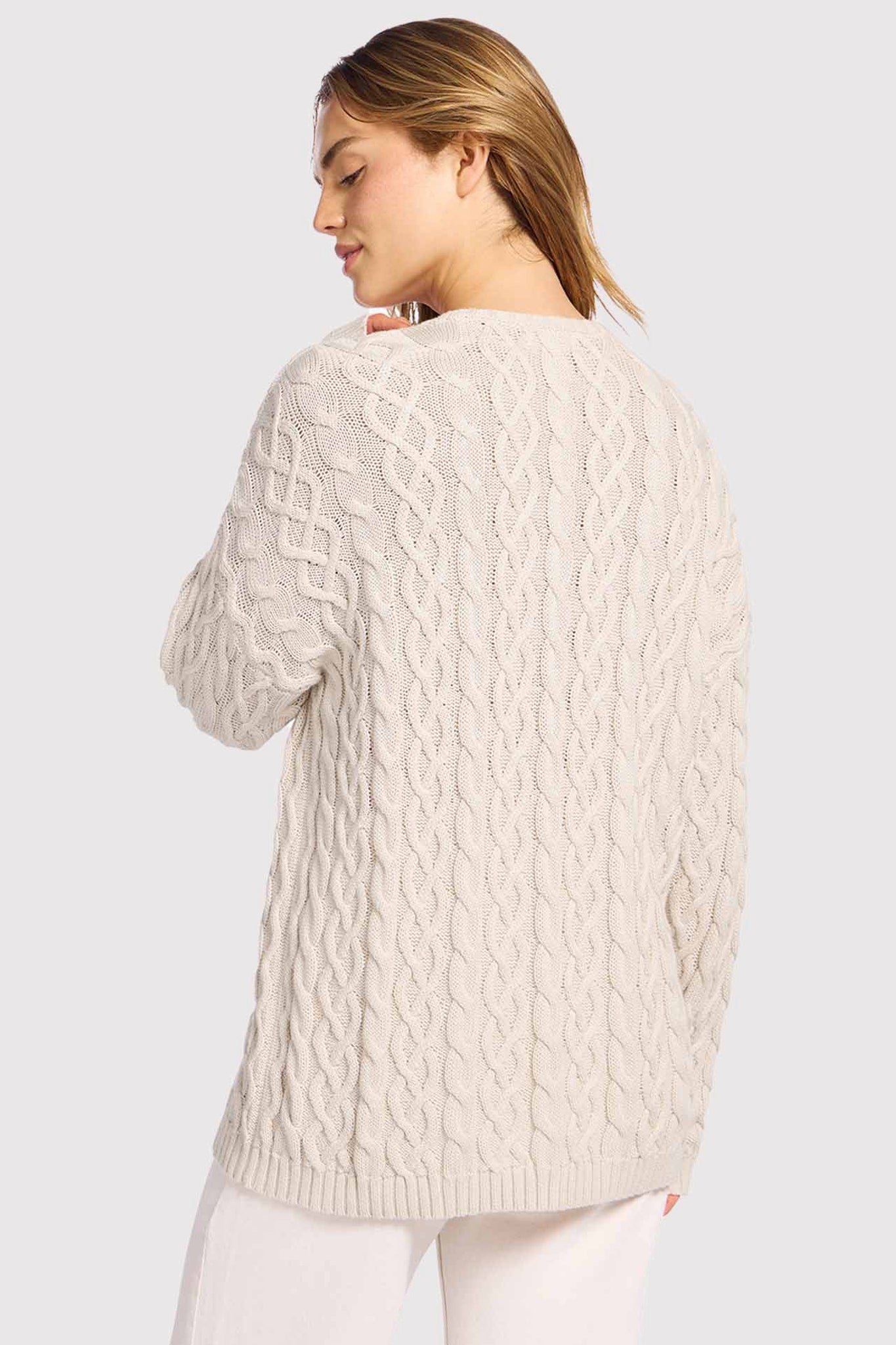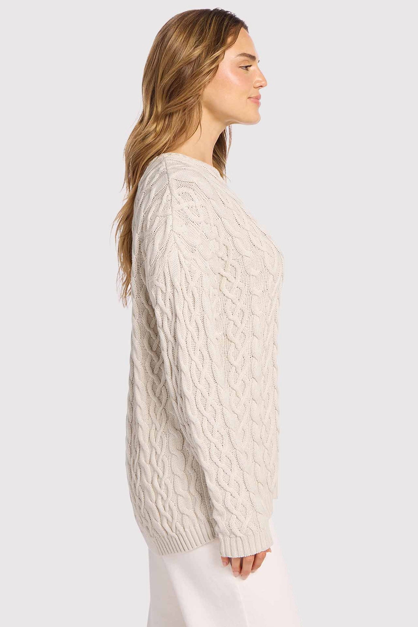 Lightweight Cable Sweater | Bone