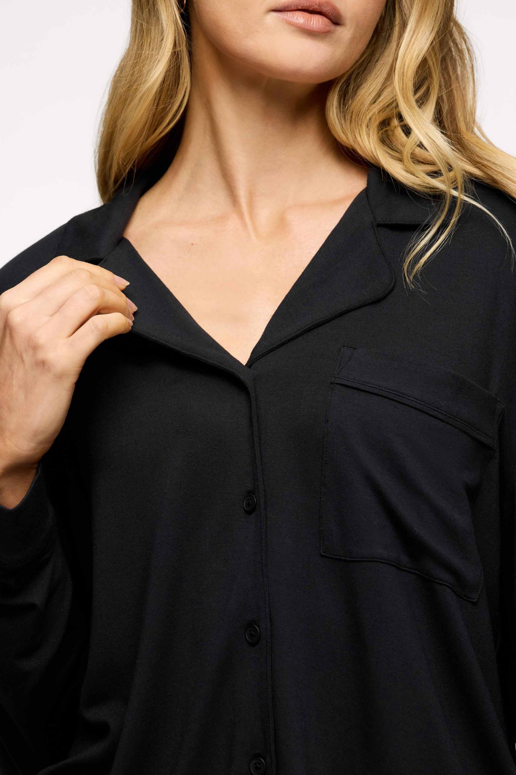 Long Sleeve Button-Up Pajama Shirt | Black