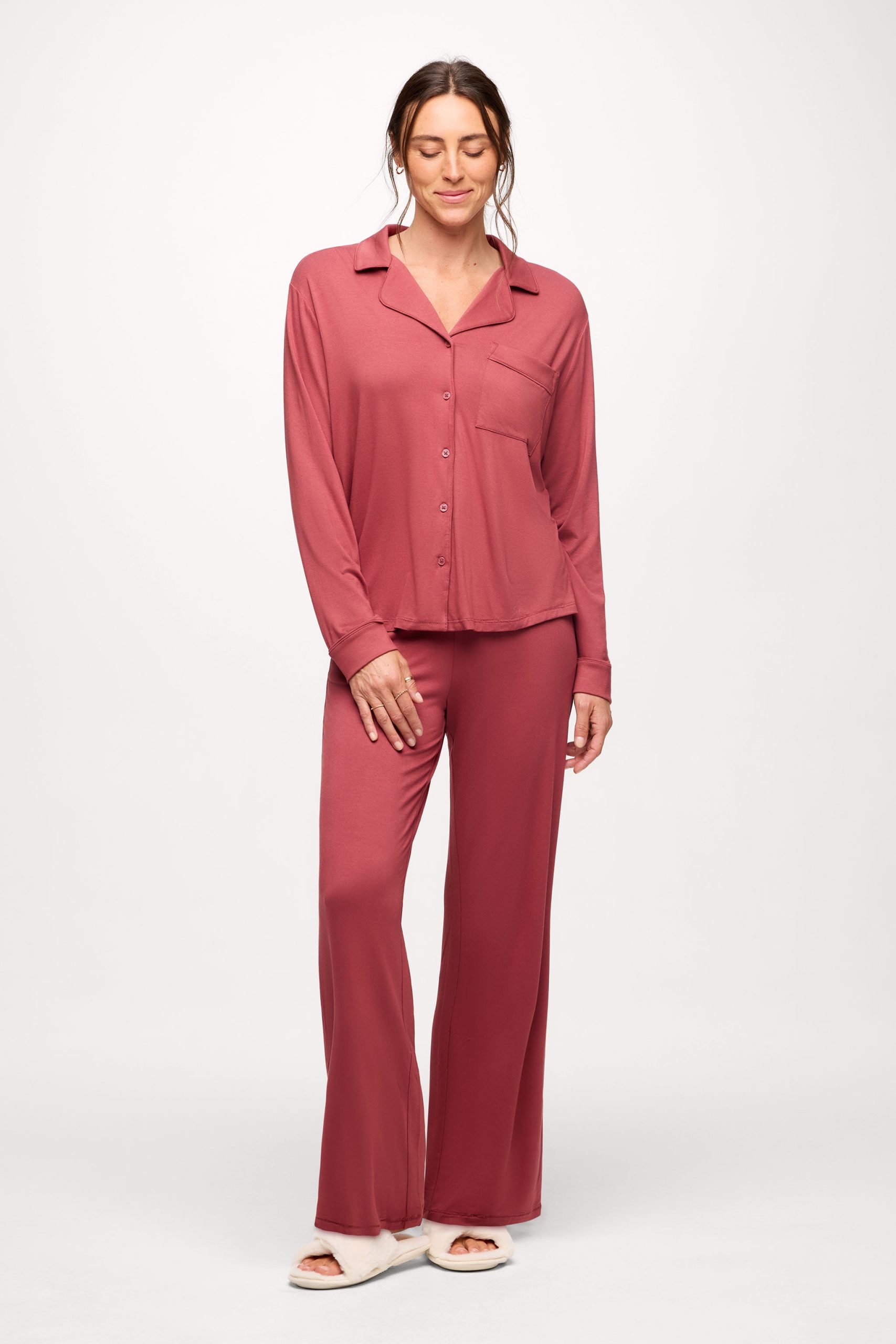 Long Sleeve Button-Up Pajama Shirt | Mauve