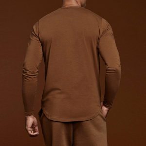 Long Sleeve Curved Hem T-Shirt | Chocolate