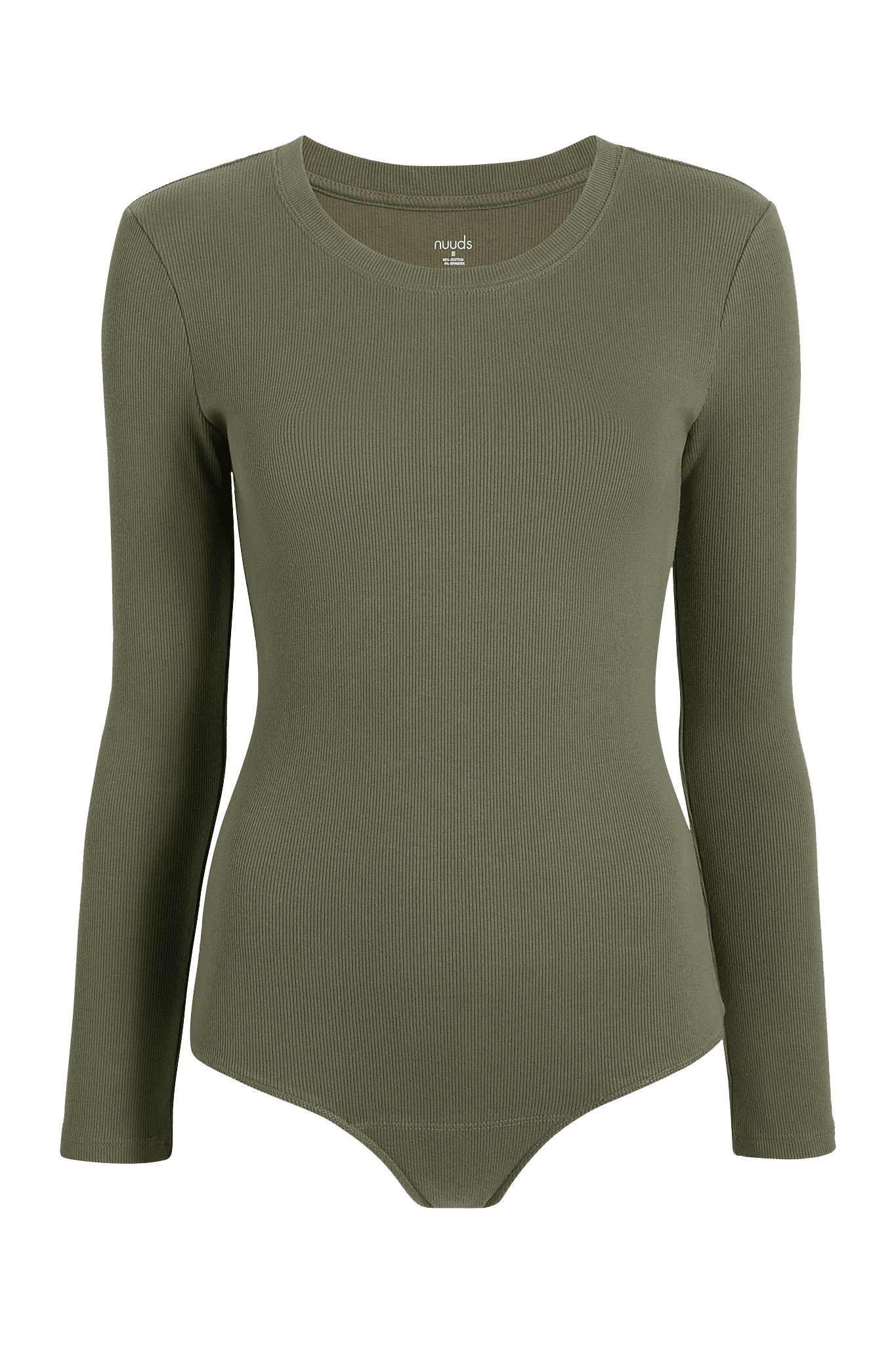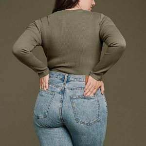 Categories: All Products, Bodysuits, Dark Olive, discontinued, Fall2024, Instock, long sleeve bodysuits, long sleeves, major markdowns, Olive, Sale, Shop All, Tops, Women's