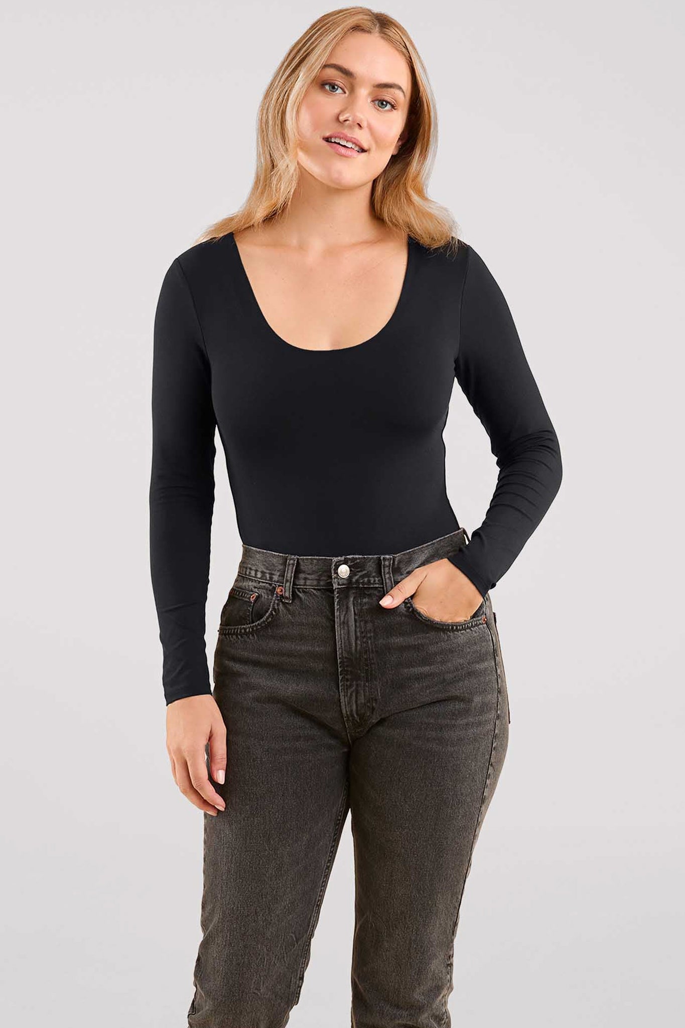 Be the first to review “Long Sleeve Scoop Neck Bodysuit | Black” Cancel reply