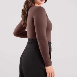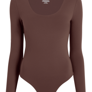 Long Sleeve Scoop Neck Bodysuit | Coffee