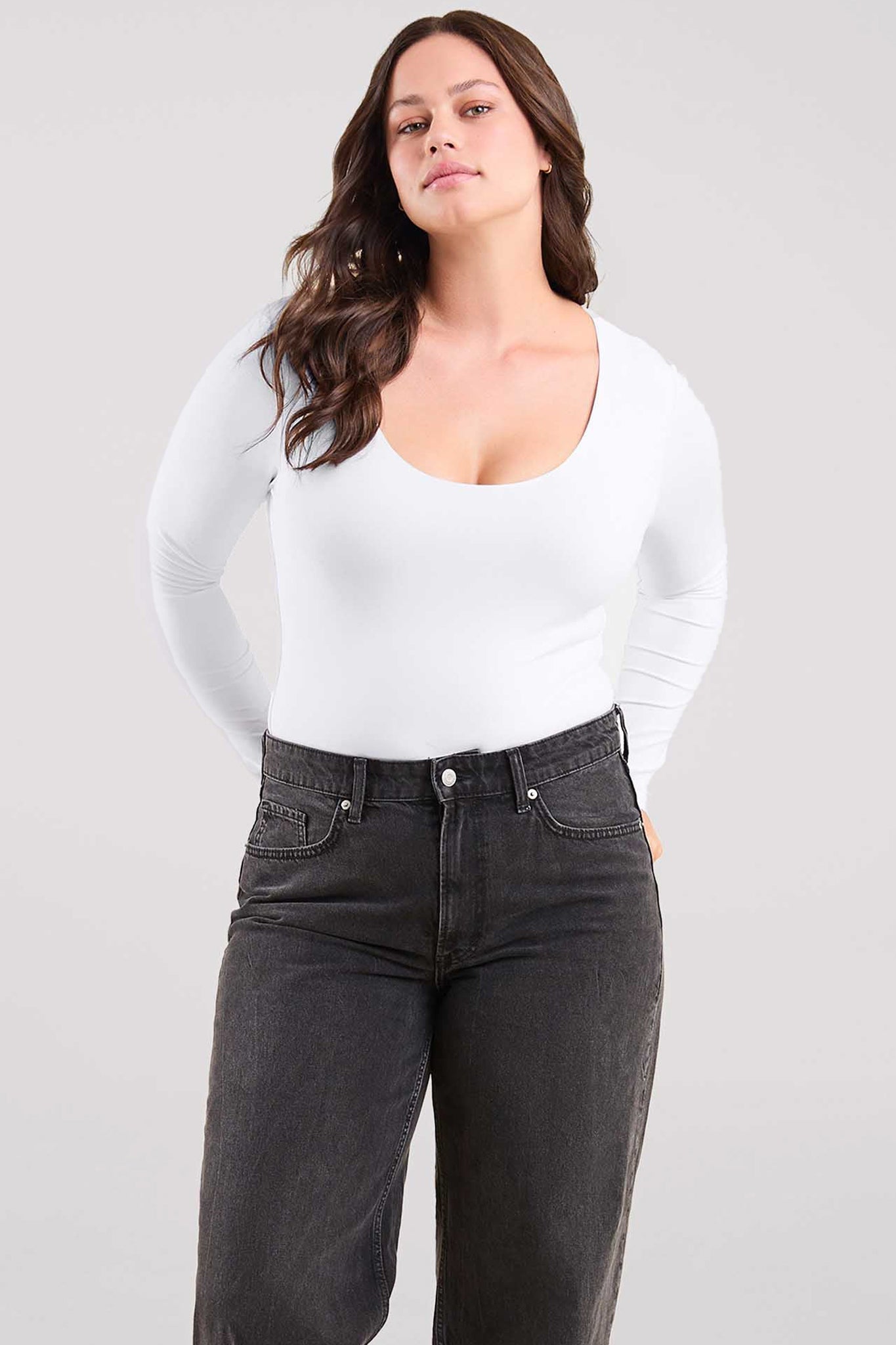 Be the first to review “Long Sleeve Scoop Neck Bodysuit | White” Cancel reply