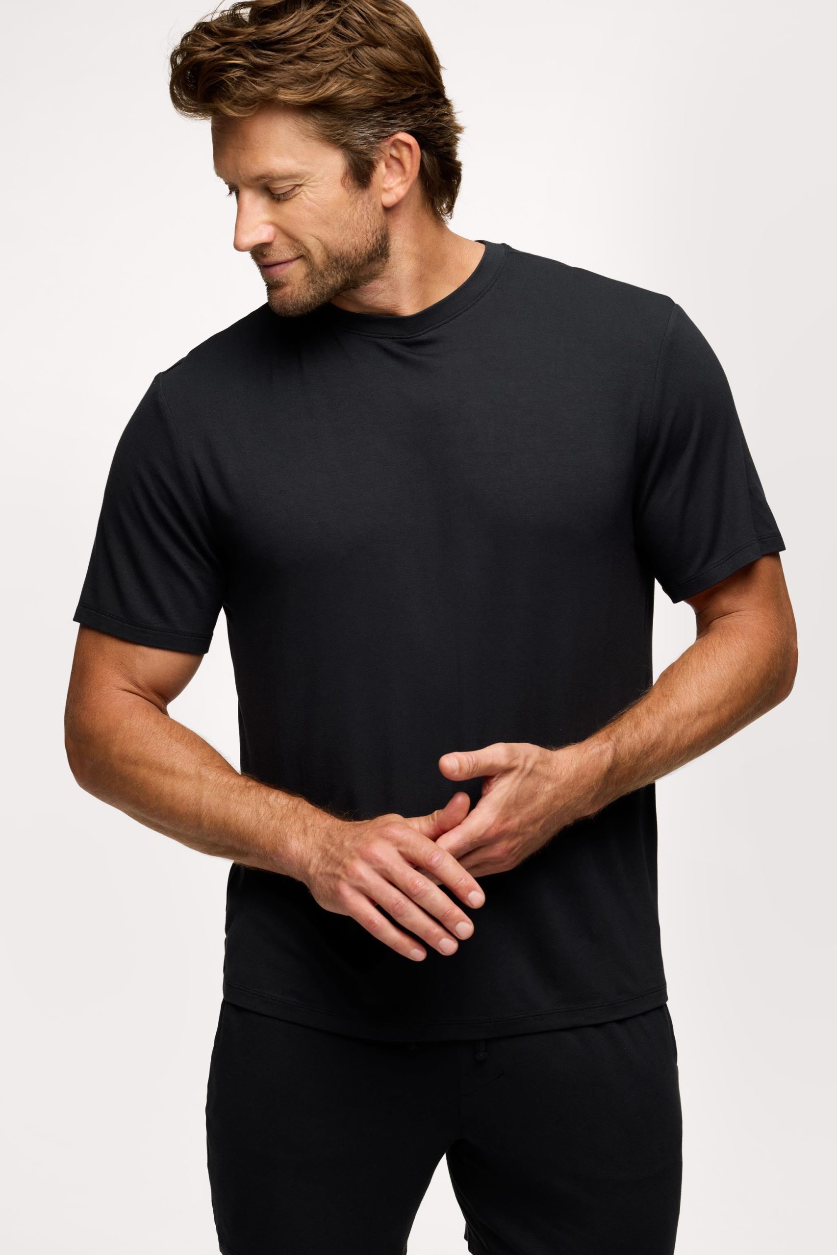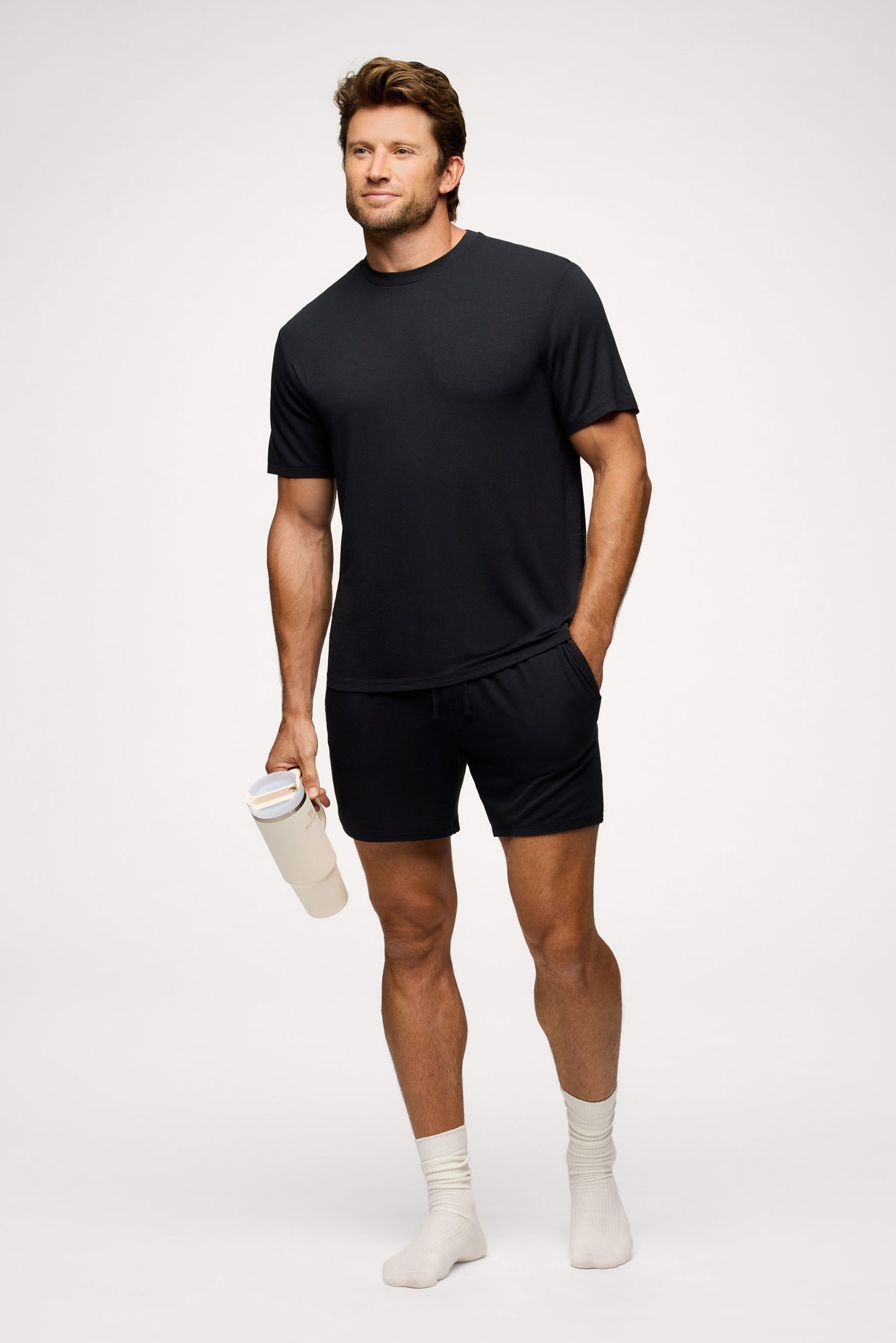 Meet the Pajama Short Set, your go-to for relaxed style and all-night comfort. Made from our jersey fabric, the short-sleeve tee and matching shorts move with you while keeping you cool and unrestricted. With a modern, effortless fit, and thoughtful details, this set makes lounging and downtime feel effortlessly elevated.
