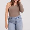 The ultimate cold shoulder moment is here. This flattering, double-lined, asymmetrical cut showcases just the right amount for when you want to be a little extra nuud.