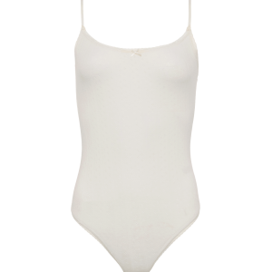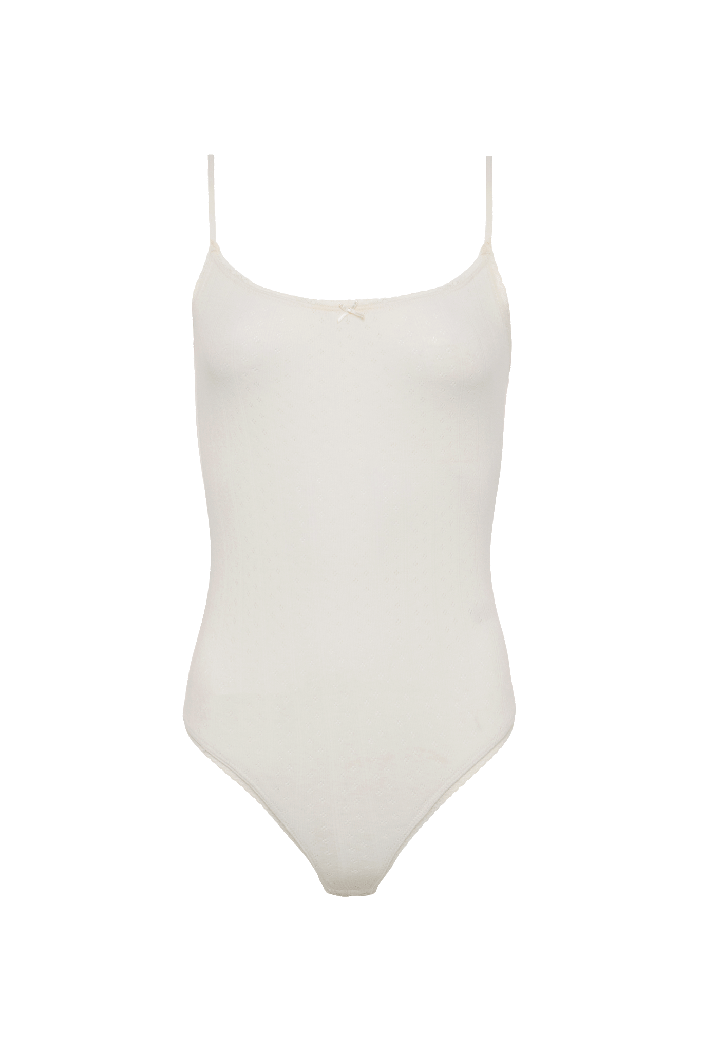 The Pointelle Bodysuit is designed with delicate texture and a soft, feminine feel. Crafted from lightweight cotton pointelle knit, this tank-style bodysuit features an elegant openwork pattern that feels breathable, comfortable, and gentle against the skin. Adjustable spaghetti straps and subtle trim details add a refined finish while maintaining an easy, wearable silhouette.