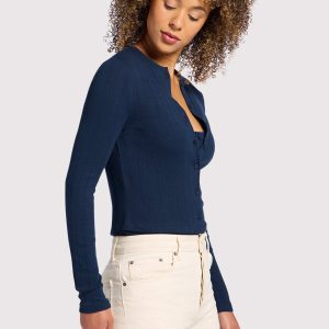 Pointelle Cardigan | Navy