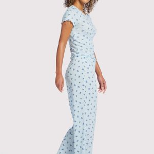 Pointelle Pajama Pant Set | Ditsy Blue