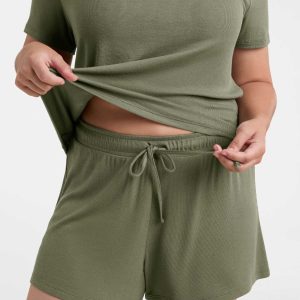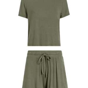 Be the first to review “Ribbed Pajama Short Set | Olive” Cancel reply