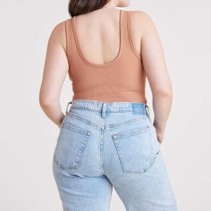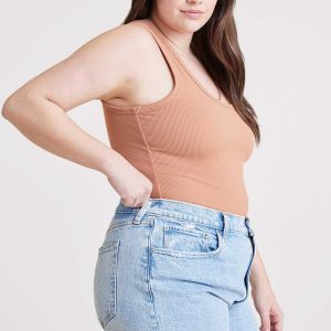 Ribbed Scoop Tank Bodysuit | Clay