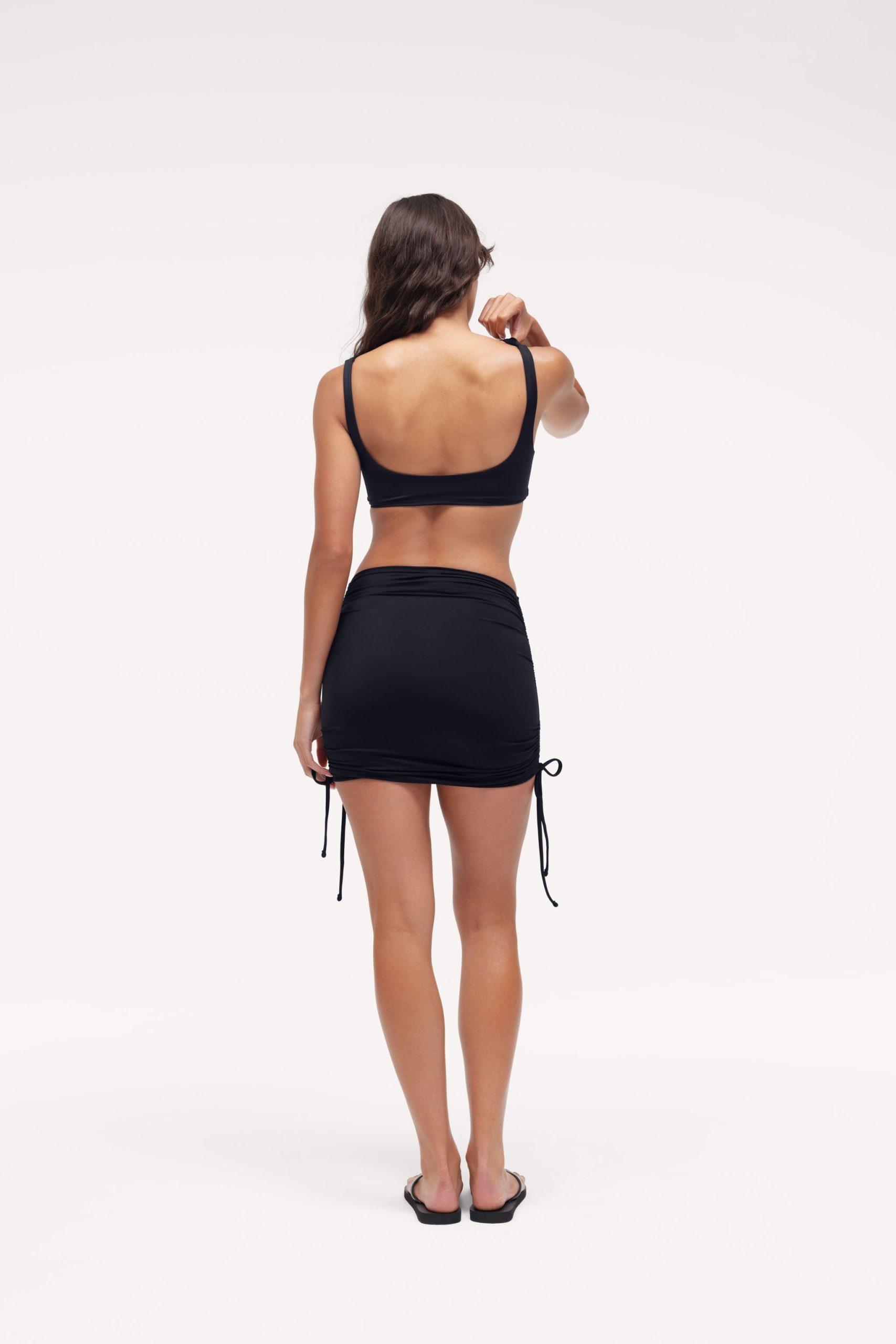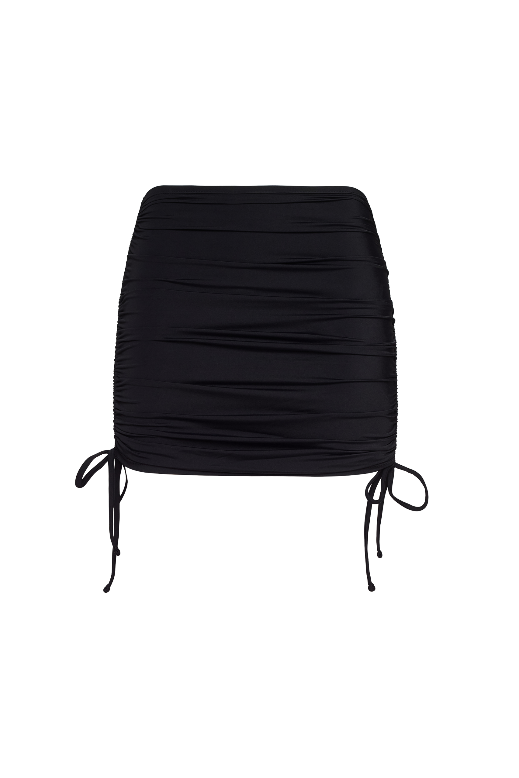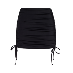 A ruched swim skirt with adjustable coverage and a clean, flattering fit. Made in smooth swim fabric that stretches and holds its shape in and out of the water. Side drawstrings let you wear it longer or more scrunched, with a simple tie at the hem. Designed to stay in place whether you’re swimming, walking, or lounging.