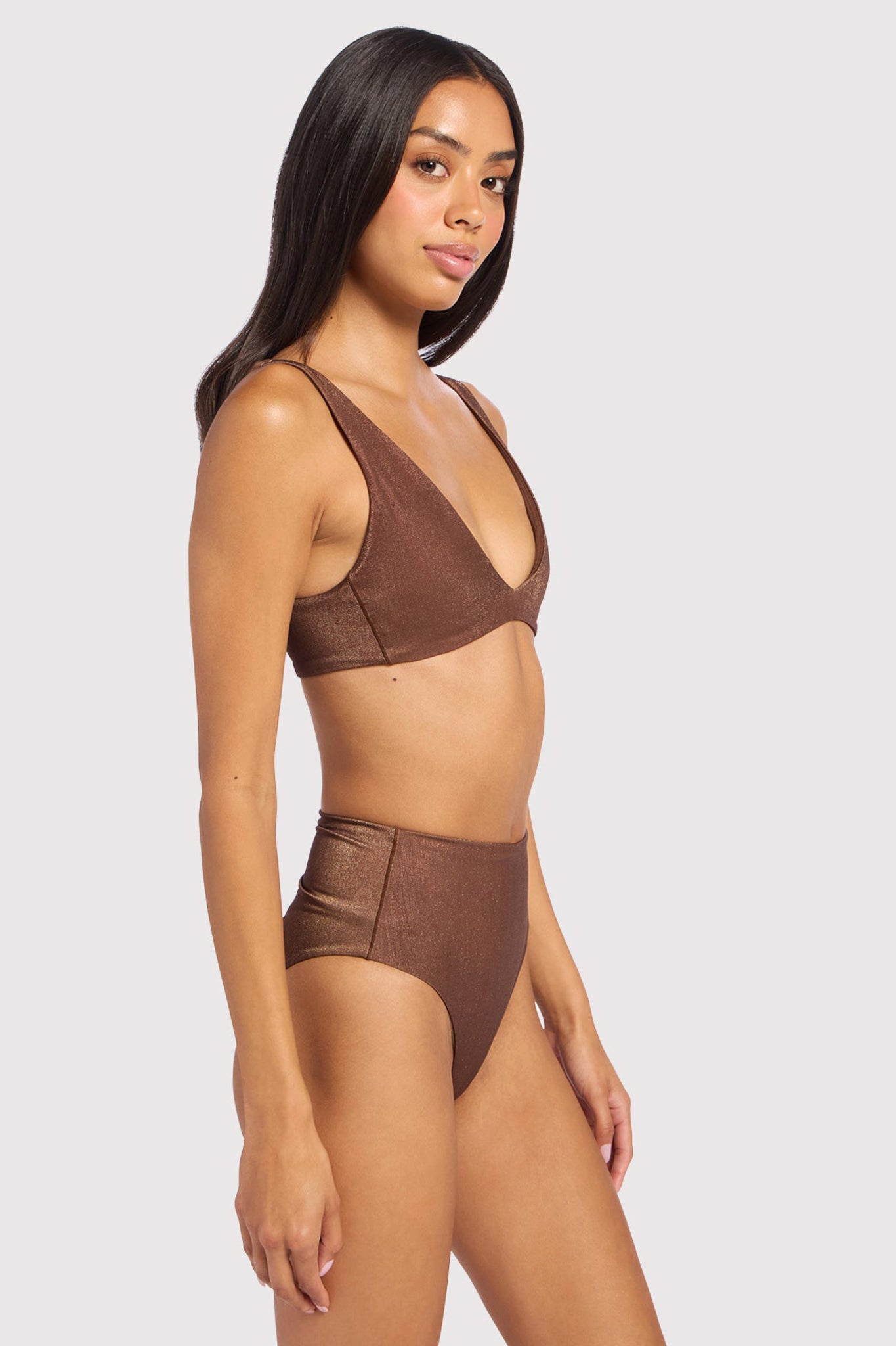 Shimmer Plunge Bikini Top | Coffee