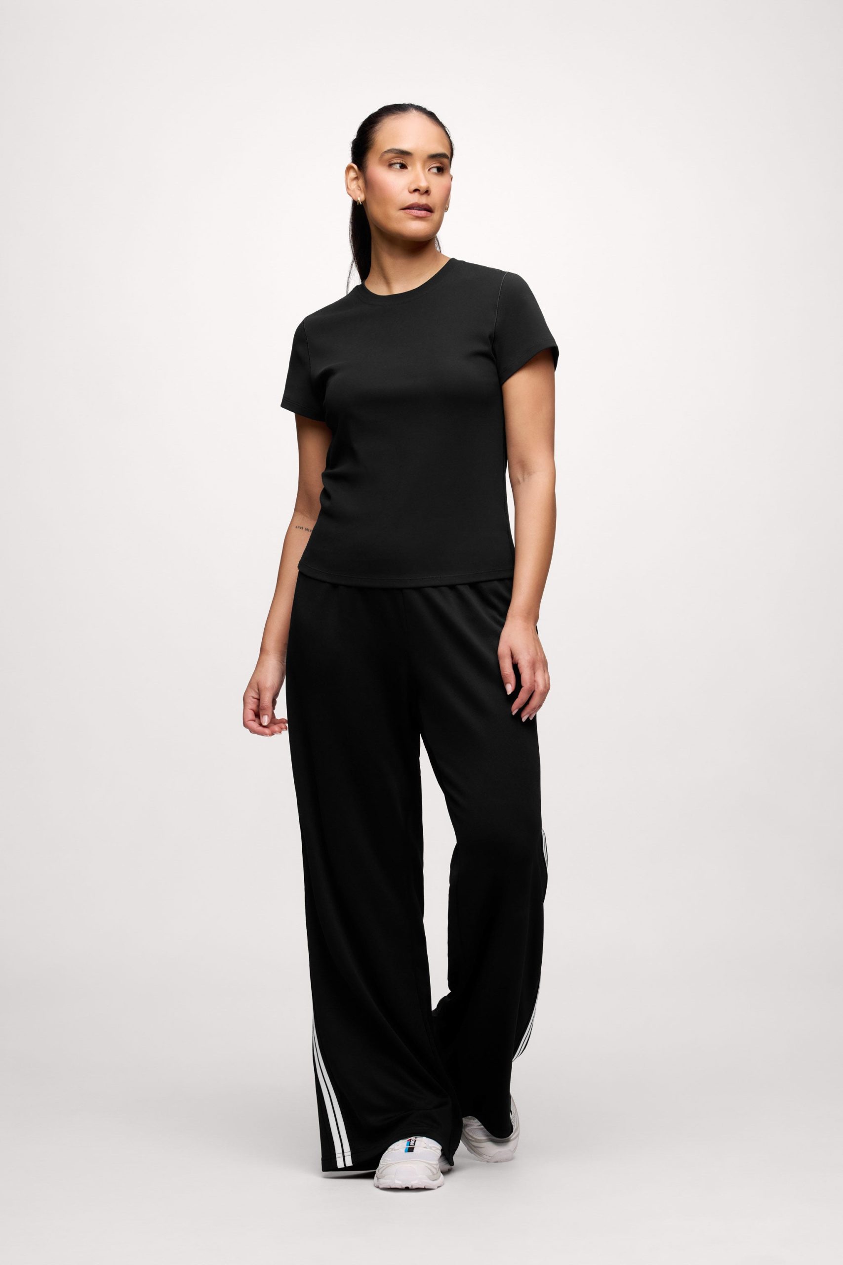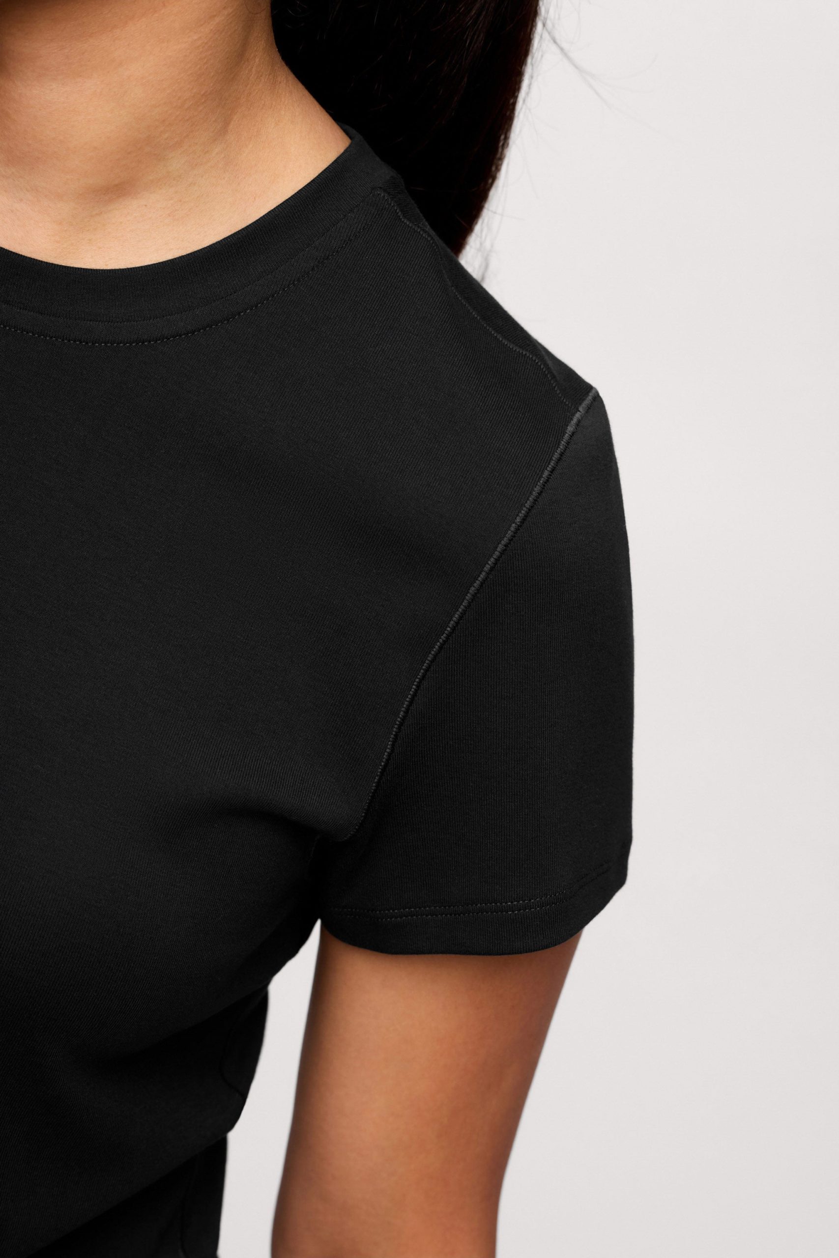Meet the tee that does the most with the least. The Shrunken Tee is fitted without feeling tight, made from a stretchy cotton rib that’s thick enough to smooth but still soft. No cap sleeves here, no squeezing your arms, and it keeps its shape wash after wash.