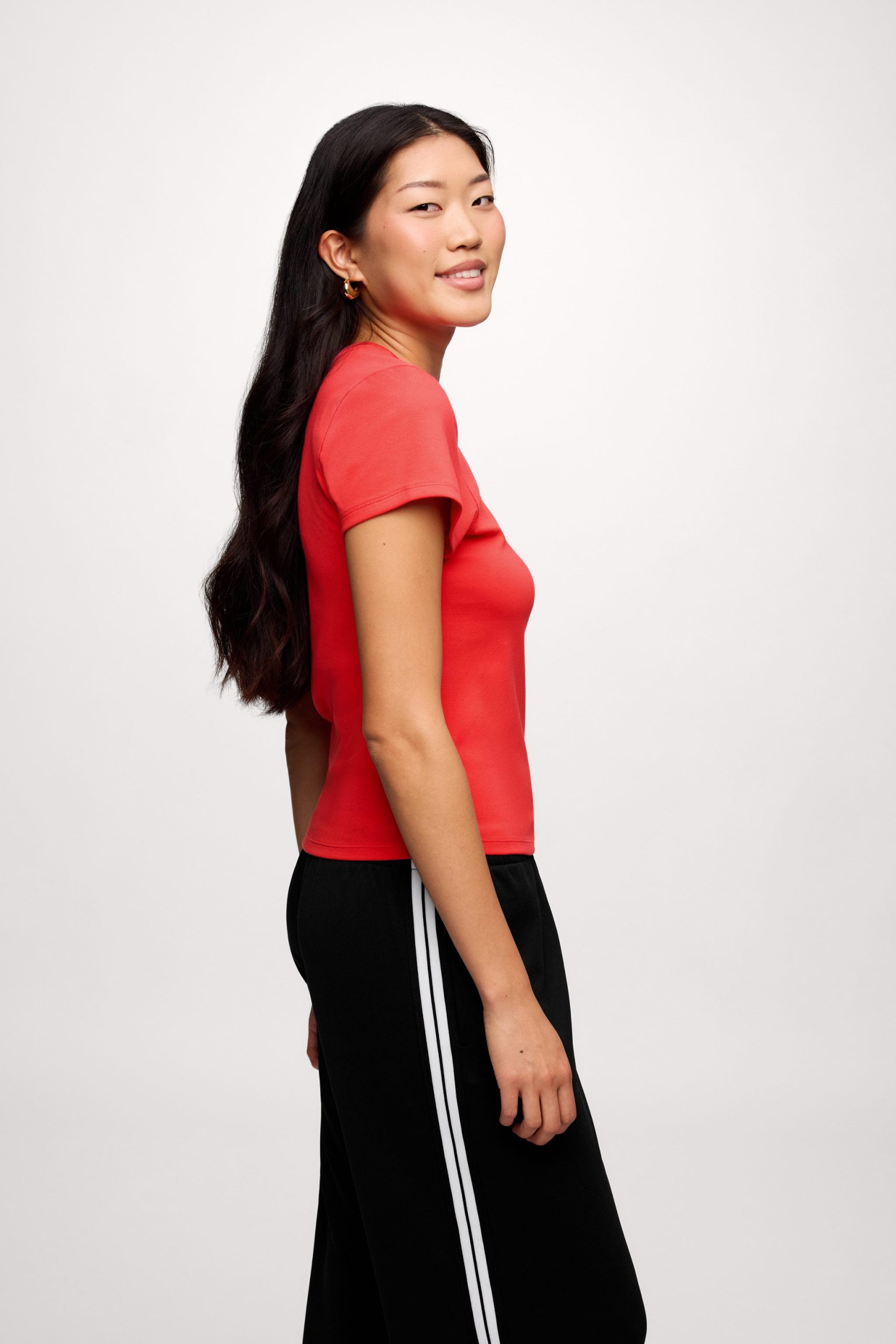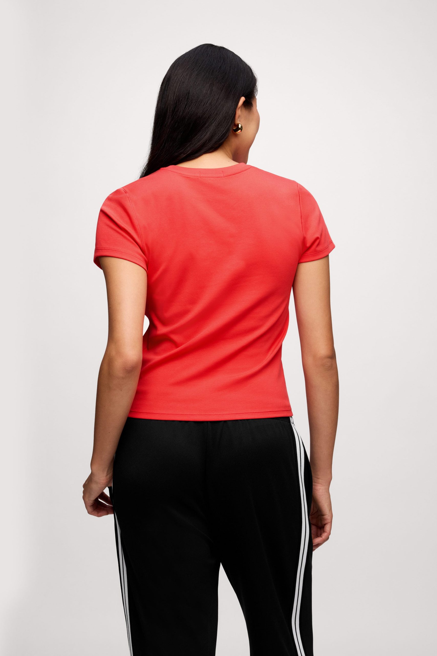 Meet the tee that does the most with the least. The Shrunken Tee is fitted without feeling tight, made from a stretchy cotton rib that’s thick enough to smooth but still soft. No cap sleeves here, no squeezing your arms, and it keeps its shape wash after wash.