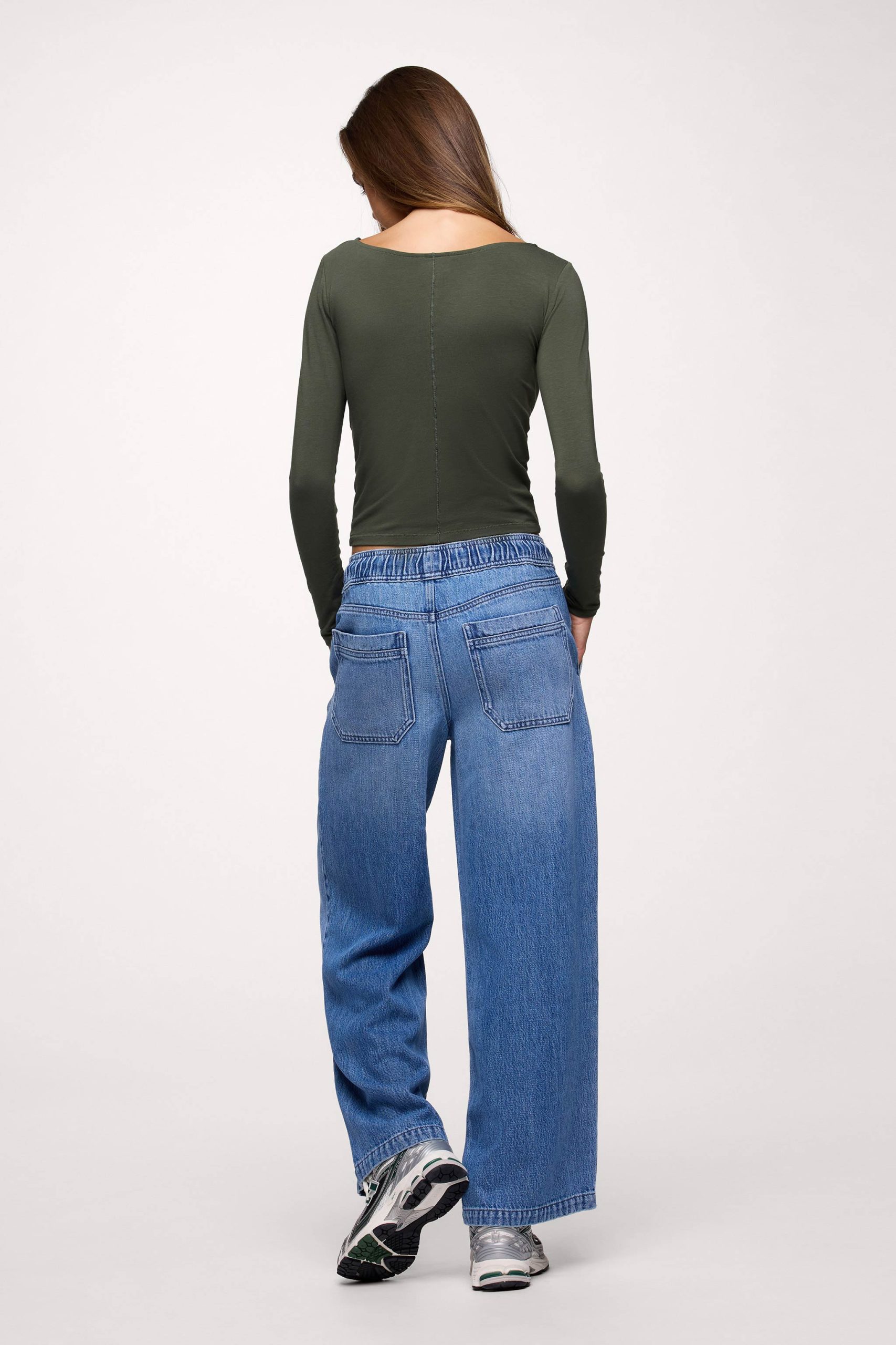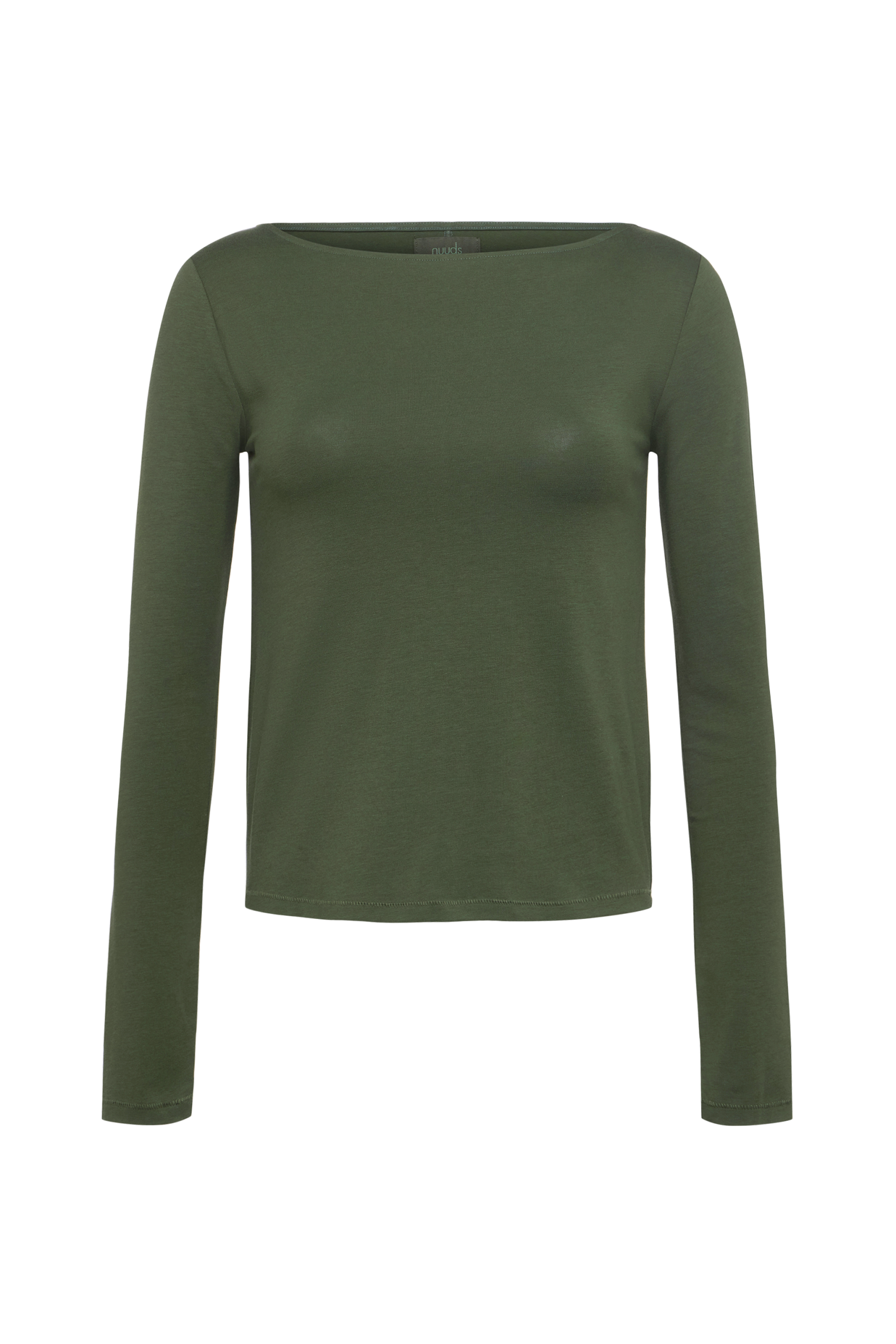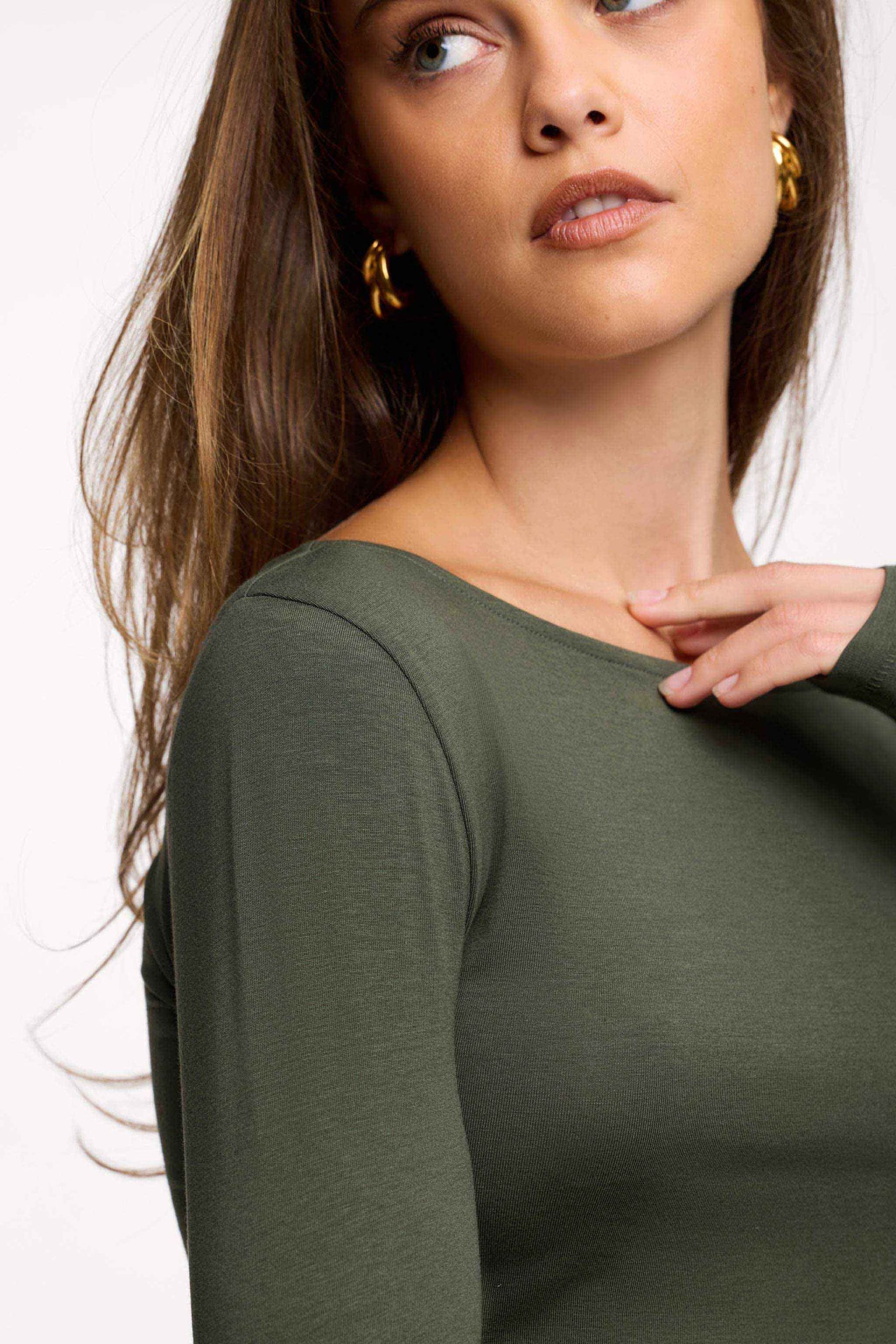 Slinky Jersey Boat Neck Long Sleeve Shirt | Darkest Olive