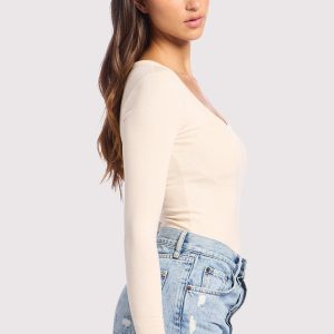 Slinky Rib Long Sleeve Bodysuit | Bone