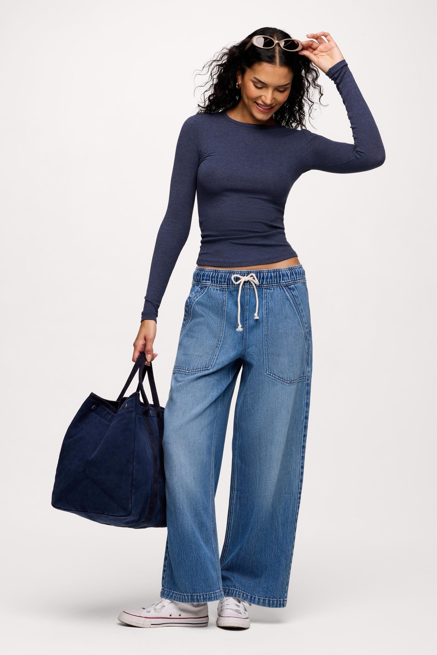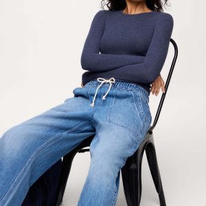 Categories: All Products, Best Sellers, Heather Navy, Instock, long sleeves, Navy, Shop All, Slinky Rib, tees, Tops, Women's
