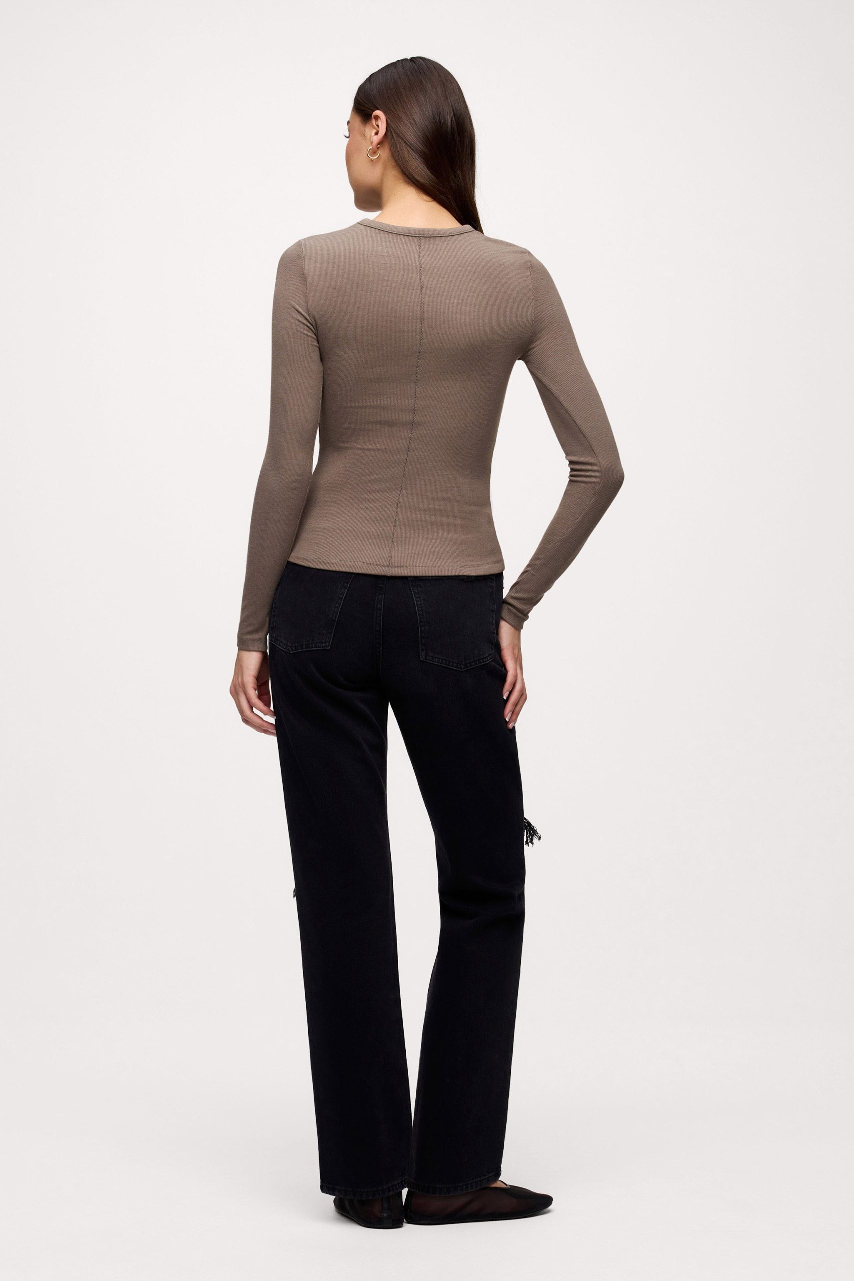 Slinky Rib Long Sleeve Shirt | Mocha