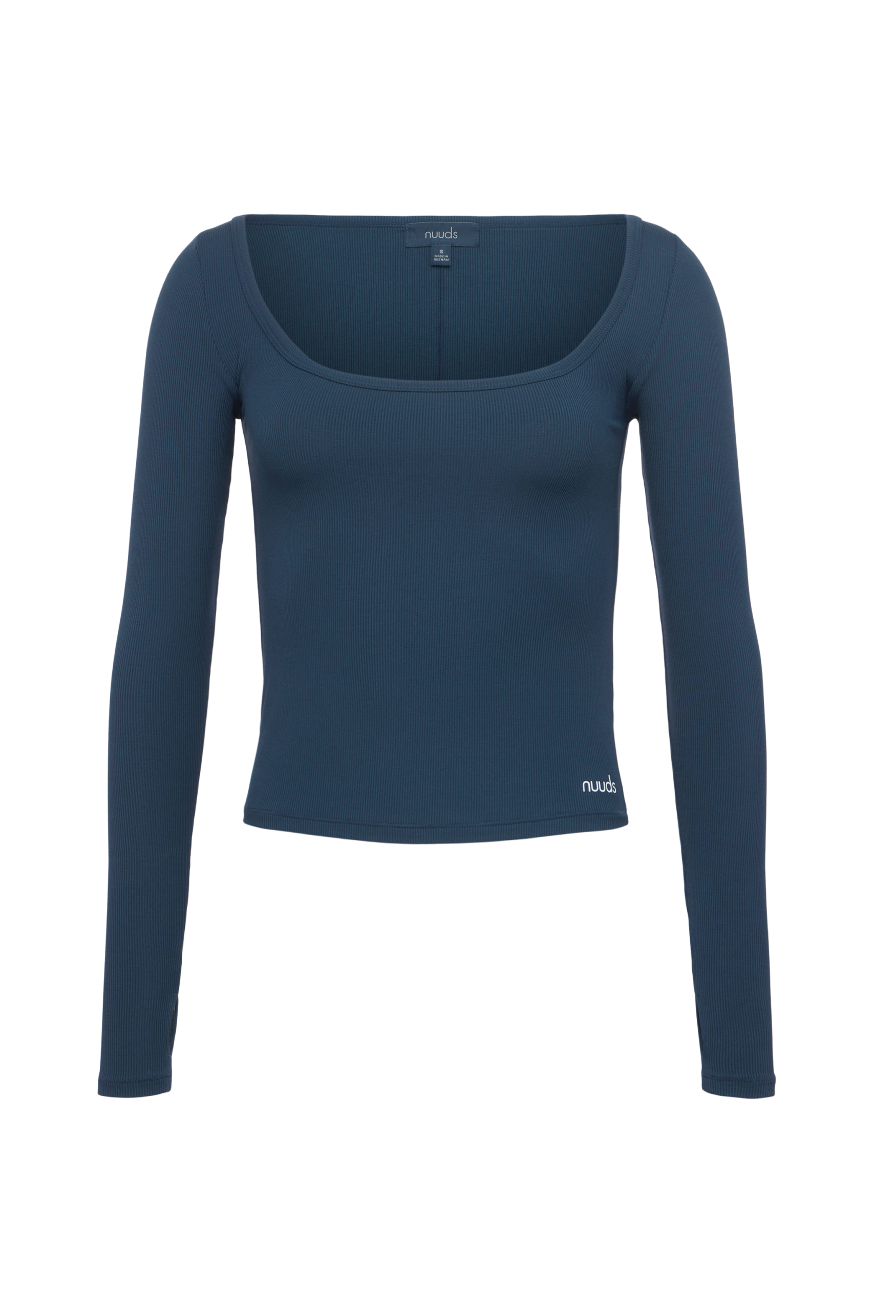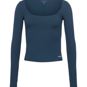 Sporty Rib Portrait Long Sleeve Top | Navy