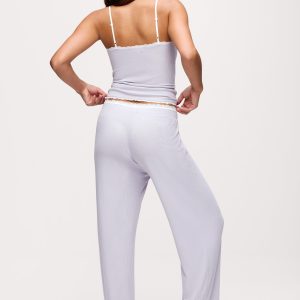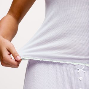Relax in style with the Sweetheart Pajama Cami, crafted from cloud-like ribbed knit that drapes lightly against the skin. Delicate lace adds a flirty, feminine touch without feeling fussy. Adjustable straps and a small rose detail at the front give it a sweet, girly finish.