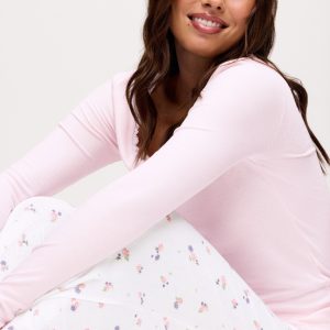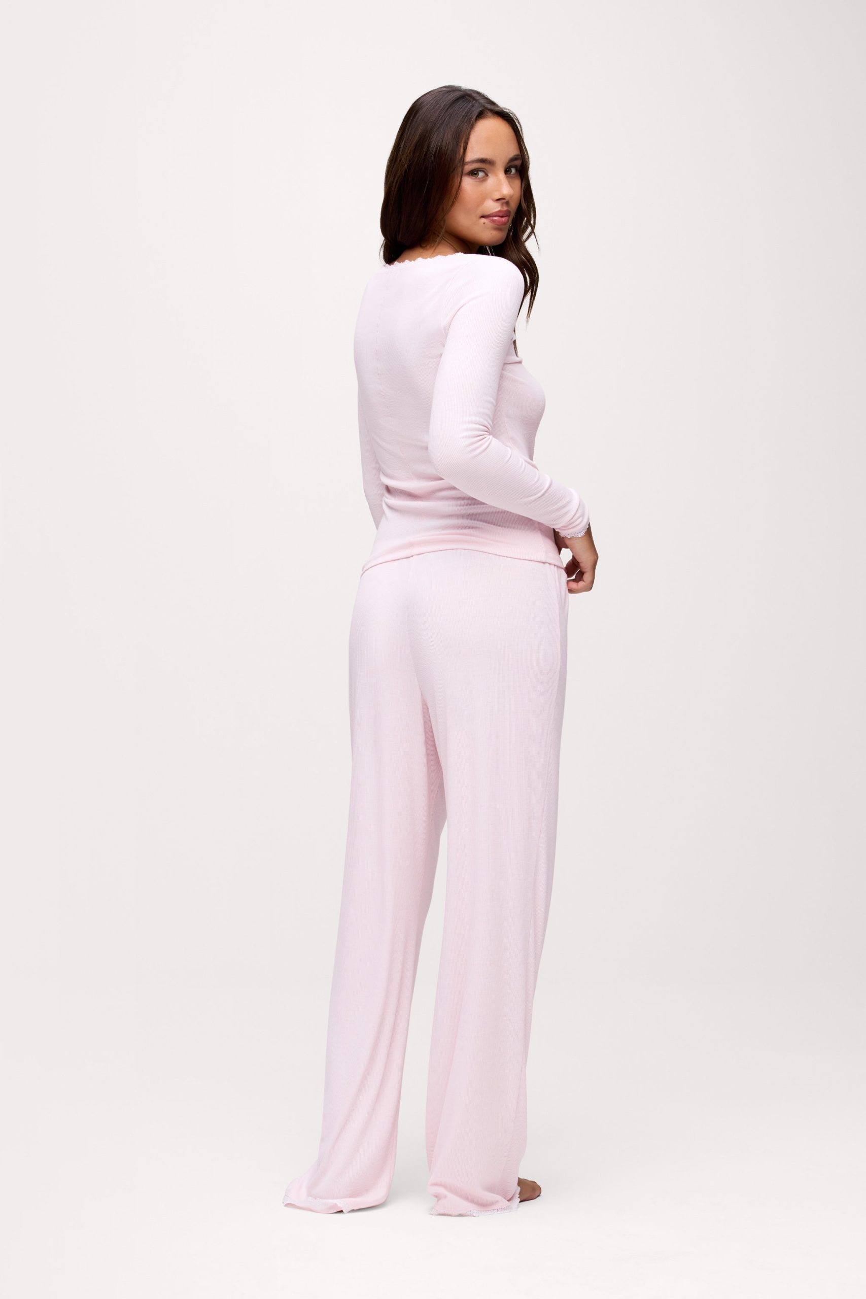 Your favorite sleep top, with a softer, more romantic feel. This ribbed long sleeve is light and stretchy, with delicate lace details and a sweet bow to add a feminine touch. Designed to skim the body just right, it pairs perfectly with the Sweetheart Pajama Pant for a polished, cozy look that feels just as good as it looks.