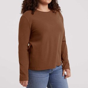 Vintage Cotton Long Sleeve Everyday T-Shirt | Chocolate