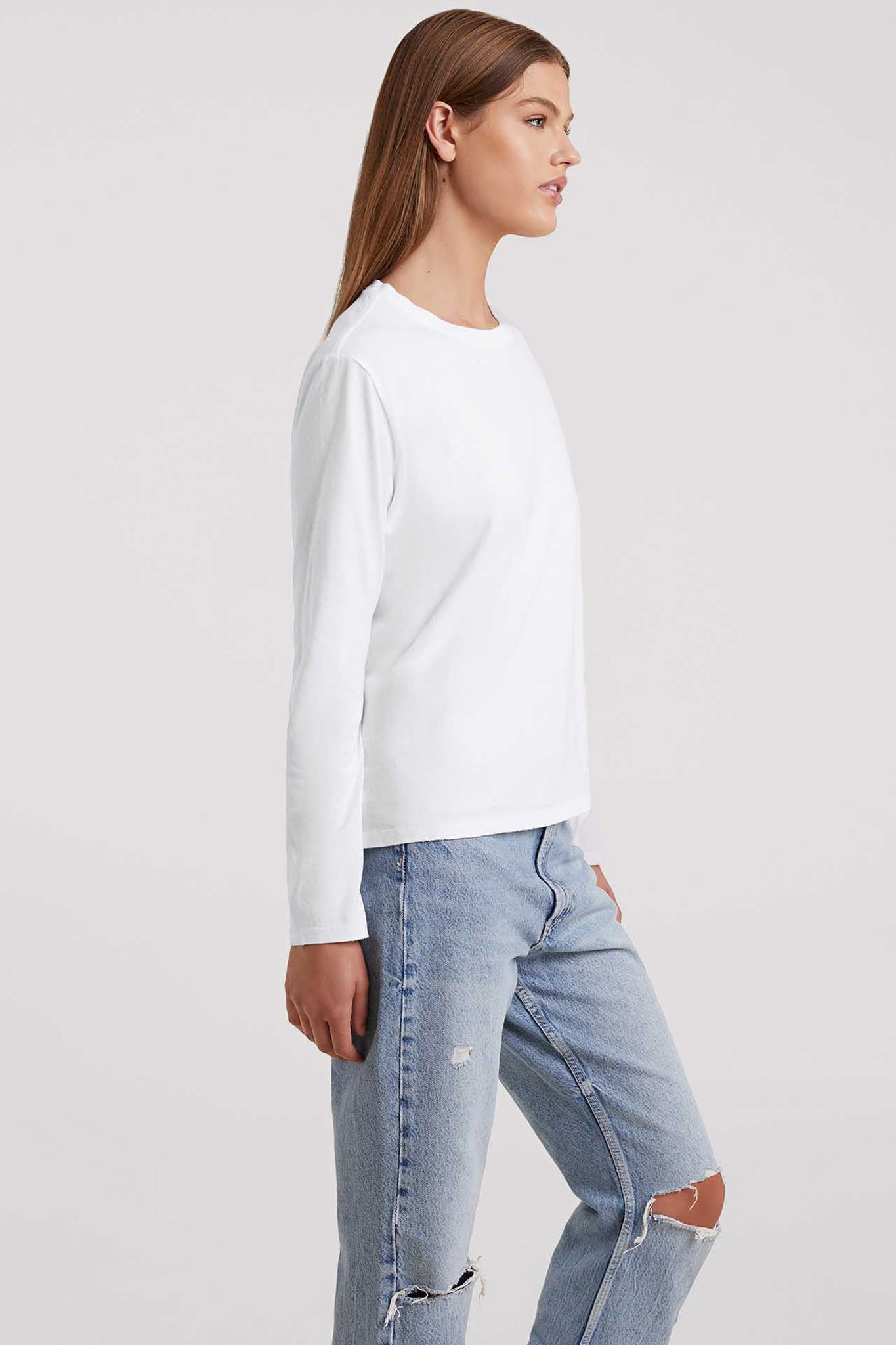 Vintage Cotton Long Sleeve Everyday T-Shirt | White