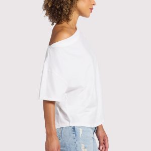 A modern twist on a classic tee, the Off The Shoulder T-Shirt is designed to drape effortlessly for a chic, relaxed look. With a neckline that naturally falls off one shoulder or can be worn as a wide boat neck, this top brings an elevated, easygoing vibe to your everyday style. Crafted from soft vintage cotton with cuffed sleeves and a naturally oversized fit, it’s flattering, comfortable, and perfect for tucking into your favorite denim or pairing with relaxed essentials.