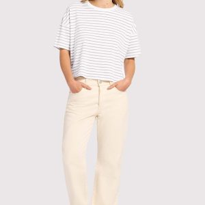 Soft Cotton Striped Boxy Tee | White/Mocha