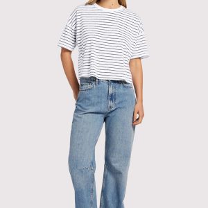 Soft Cotton Striped Boxy Tee | White/Navy