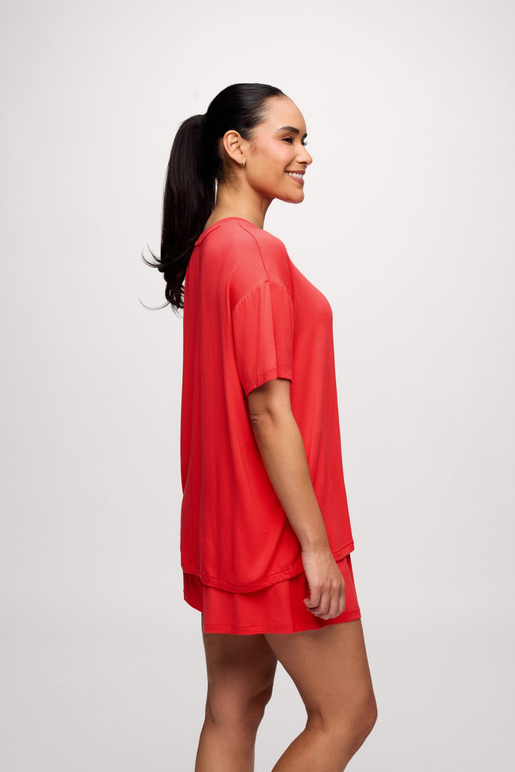 Feel nuud in our cooling Boyfriend Pajama Tee. Made from our favorite jersey pajama fabric. Curated with your comfort in mind, this breathable, stretchy top will move with you throughout the night and on slow mornings. With a classic crew neckline and relaxed fit, this top keeps you feeling put-together while enjoying your well-earned downtime.