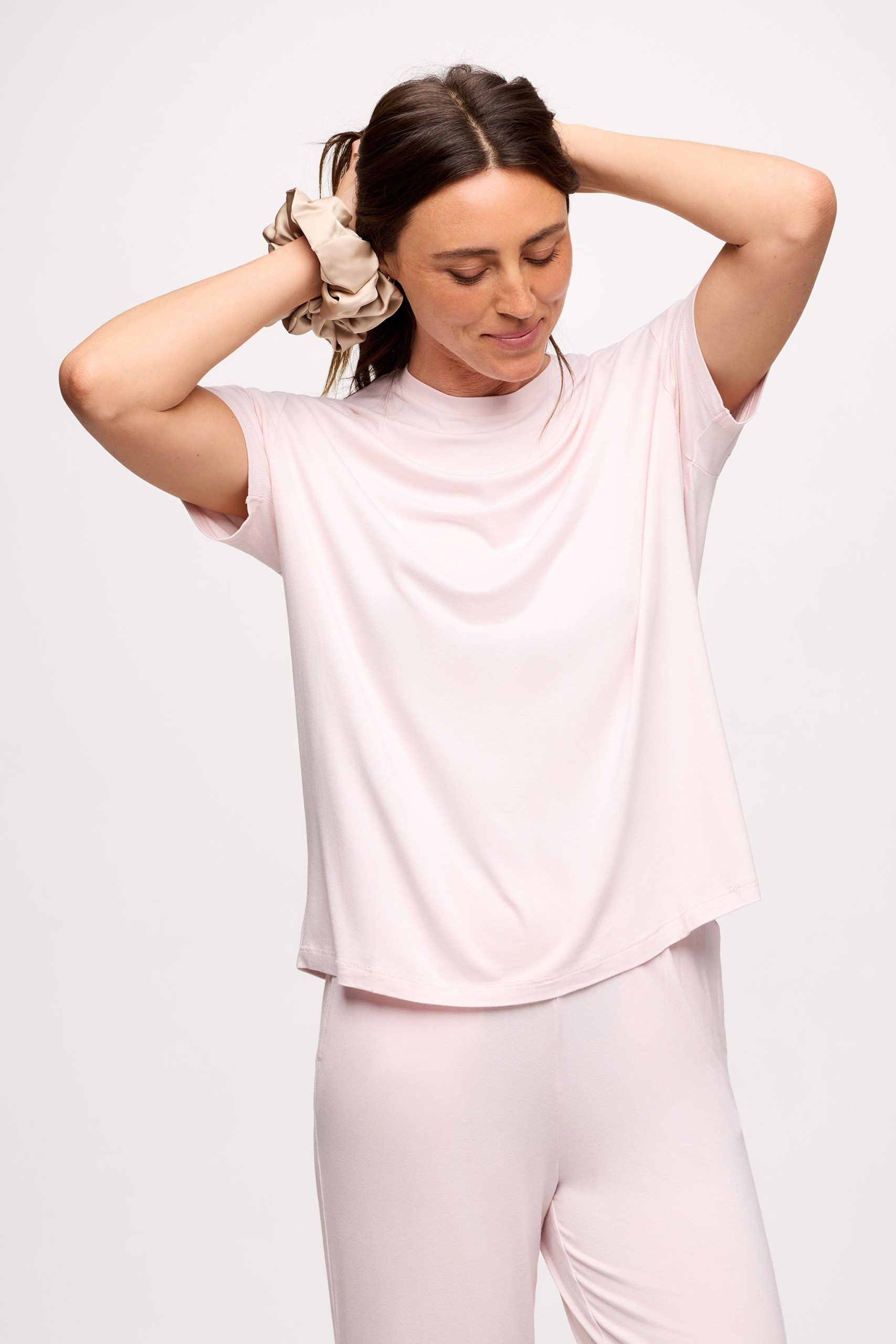 Feel nuud in our cooling Boyfriend Pajama Tee. Made from our favorite jersey pajama fabric. Curated with your comfort in mind, this breathable, stretchy top will move with you throughout the night and on slow mornings. With a classic crew neckline and relaxed fit, this top keeps you feeling put-together while enjoying your well-earned downtime.