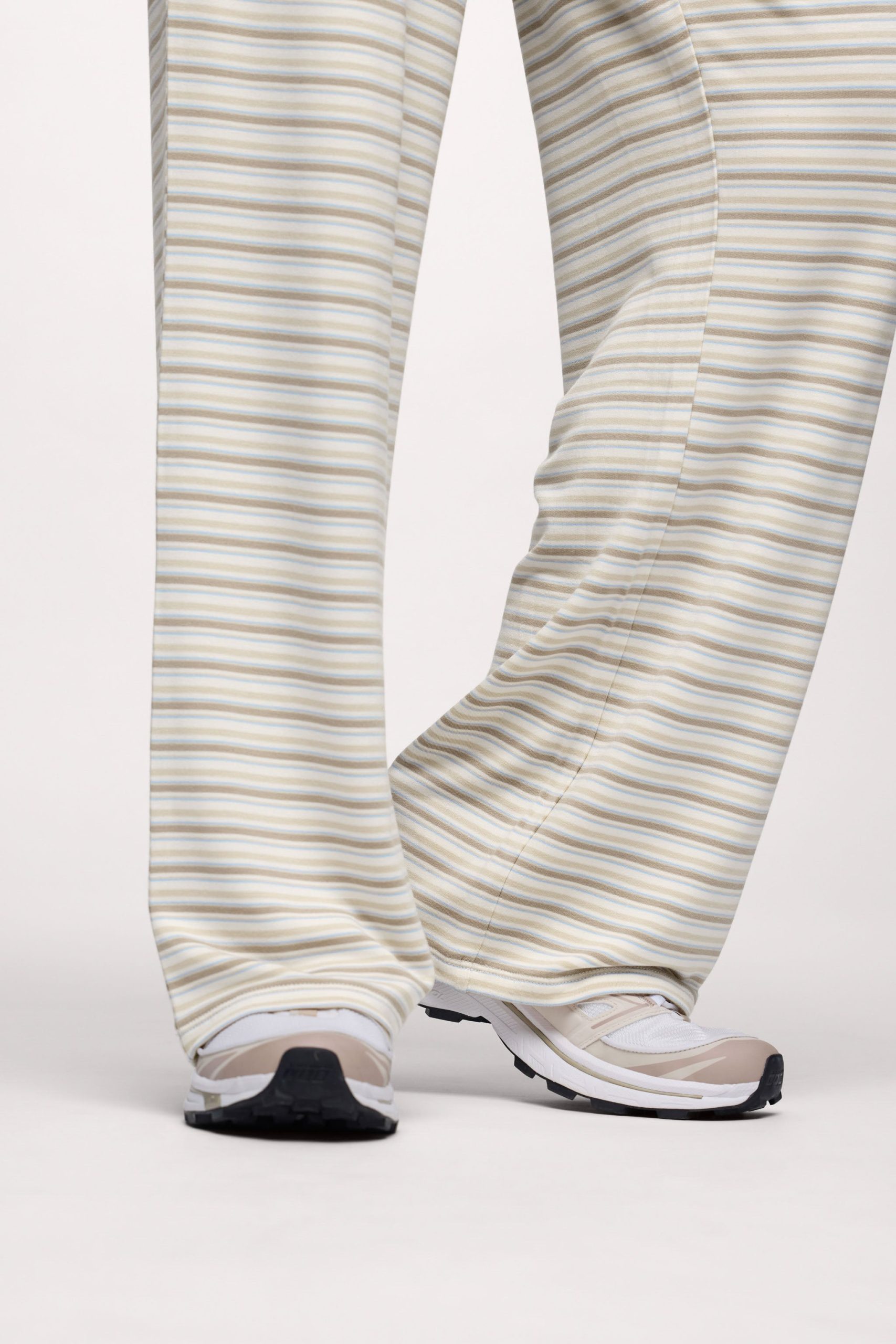 Your go-to pant for days when comfort is a must. The Boyfriend Stripe Pant is a high-rise, pull-on pant that glides over your legs with a relaxed wide leg silhouette that’s flowy and never clings. Made from a soft, stretchy knit, they feel cozy yet breathable and snap back into shape after errands, lounging, or travel. Pair them with the matching Boyfriend Stripe Tee for an easy set you’ll reach for again and again.