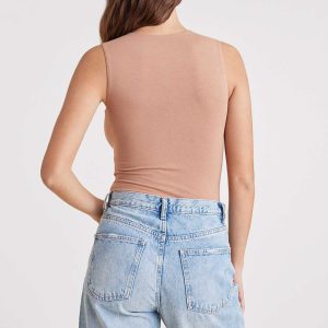 Cotton Stretch Classic Crewneck Tank Bodysuit | Clay