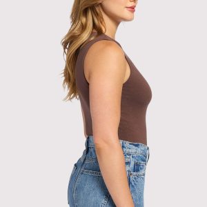 Cotton Stretch Classic Crewneck Tank Bodysuit | Coffee