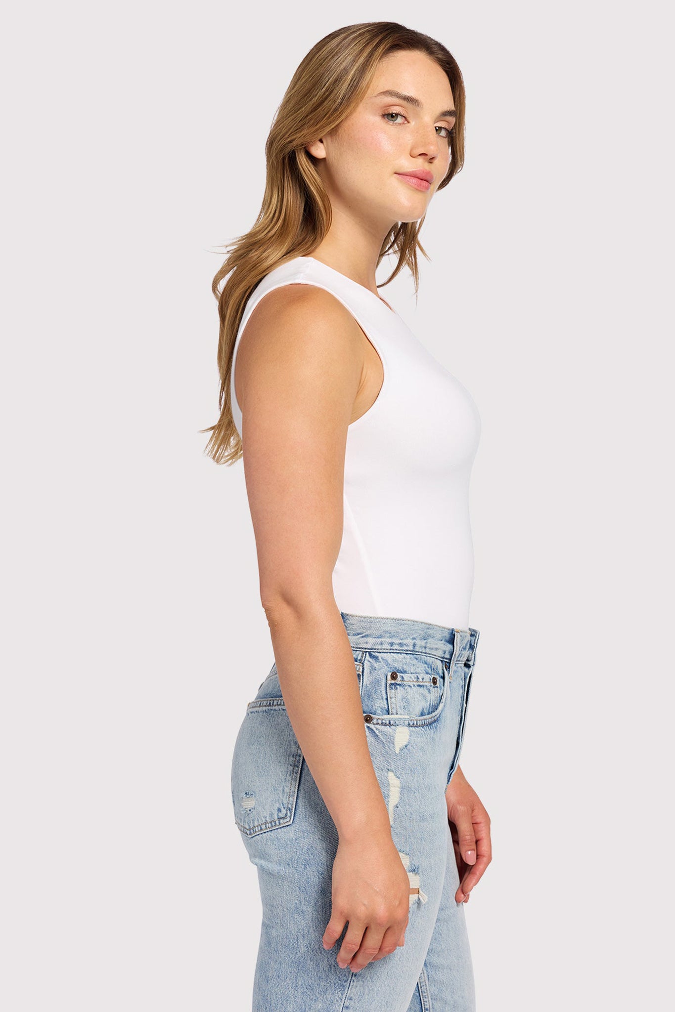 Categories: All Products, Bodysuits, Cotton Stretch, Four Tanks Drop, Instock, Pop Up, Sale, Shop All, Summer2025, tank bodysuits, tanks, tees and tanks, Tops, White, White Tank, Women's